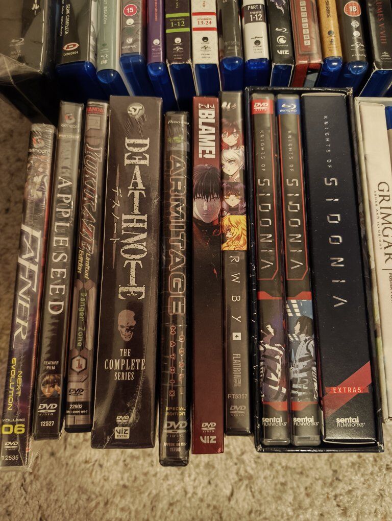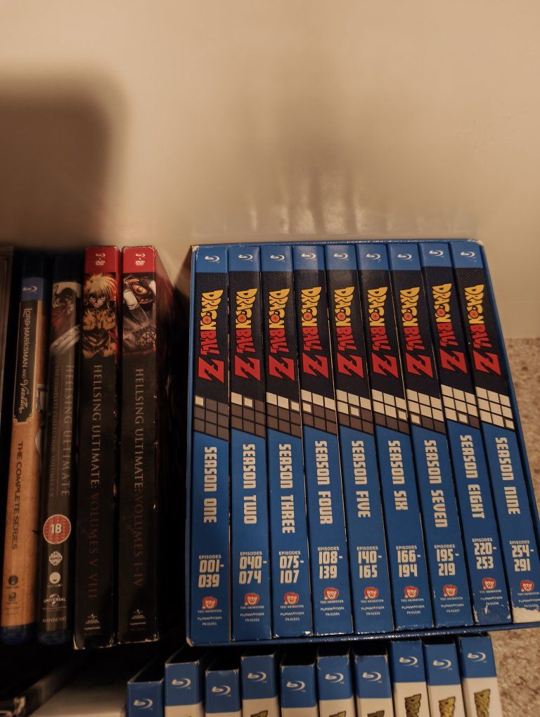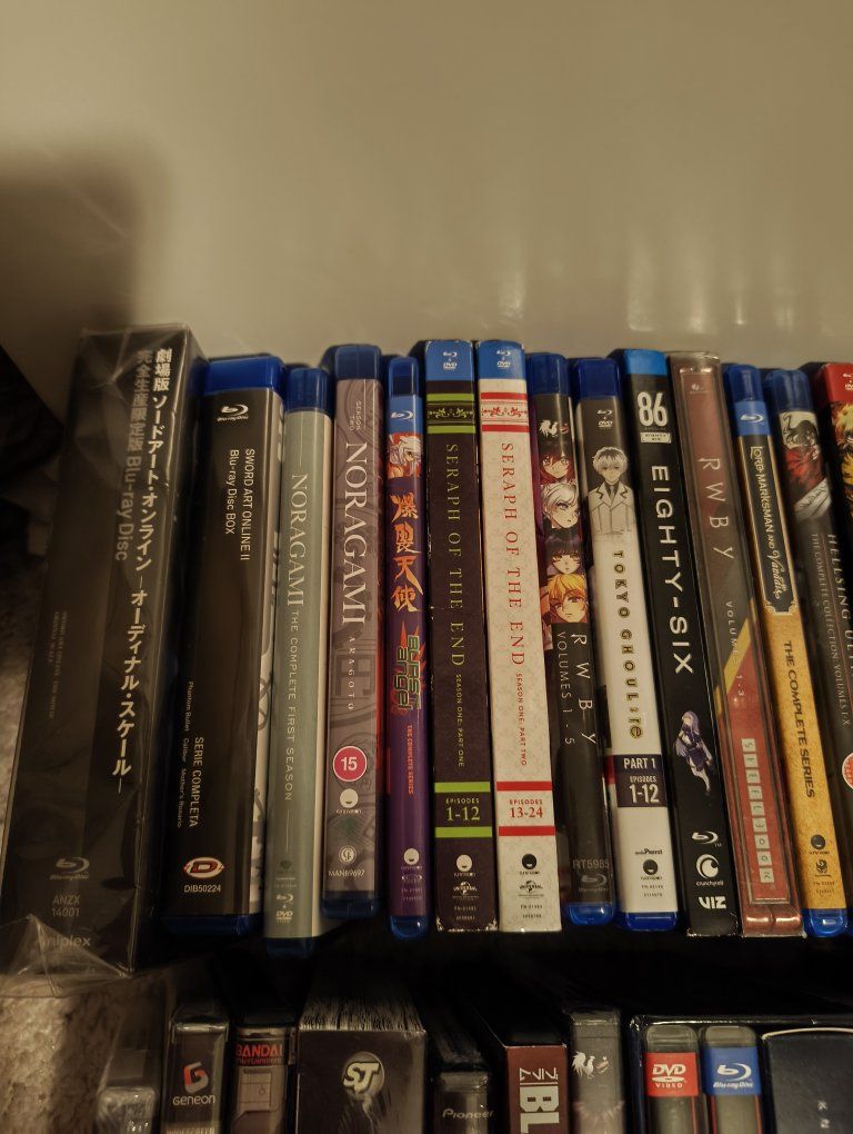 dragon Ball z bluray seasons 1-9 $125 dragon ball super 1-10 $125 sword art online ordinal scale movie JAPANESE EDITION $100 sword art online season 2 ITALIAN EDITION REGION B $75 noragami season 1 $30 noragami season 2 UK EDITION REGION B $60 lord marksman and vanadis $20 burst angel $30 tokyo ghoul re part 1 $25 seraph of the end 1-12 $40 seraph of the end 13-24 $50 Hellsing ultimate 1-4 $20 Hellsing ultimate 5-8 $40 Hellsing ultimate 1-10 (missing disc 1) UK EDITION REGION B $35 rwby 1-3 steelbook $50 rwby 1-5 $50 eighty six $30 knights of sidonia COLLECTORS $150 grimgar ashes and illusions COLLECTORS NO INSERTS $50
