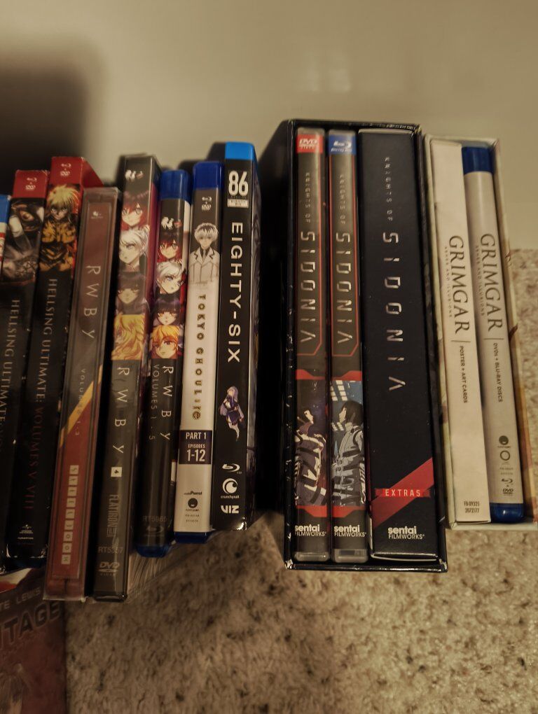 sword art online ordinal scale movie JAPANESE EDITION $100 sword art online season 2 ITALIAN EDITION REGION B $75 noragami season 1 $30 noragami season 2 UK EDITION REGION B $60 lord marksman and vanadis $20 seraph of the end 1-12 $40 seraph of the end 13-24 $50 Hellsing ultimate 1-4 $20 Hellsing ultimate 5-8 $40 rwby 1-3 steelbook $50 rwby 1-5 $50 eighty six $30 knights of sidonia COLLECTORS $150 grimgar ashes and illusions COLLECTORS NO INSERTS $50