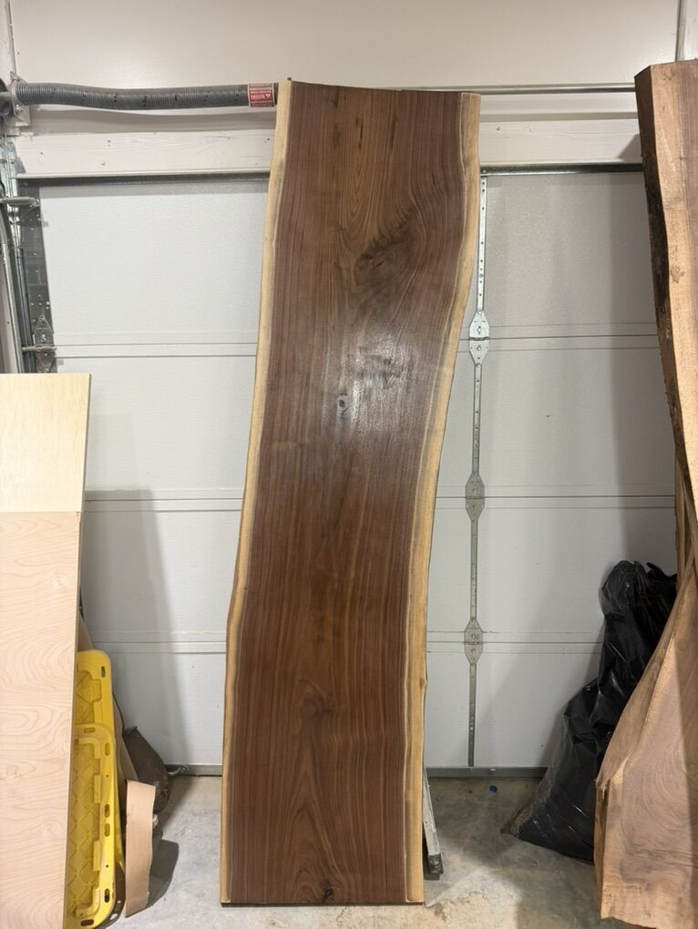 VenmoBeautiful black walnut live edge slab, perfect for a river table, desk, bench, bar top, head board or other epoxy/woodworking projects. Size: 8/4 (2” thick) x 23.5” wide x 94” long Dried, surfaced, and sealed Rich color with great natural character Ready for epoxy or finishing work Asking $800. Have plenty of other slabs available as well—message for details. Serious inquiries only.