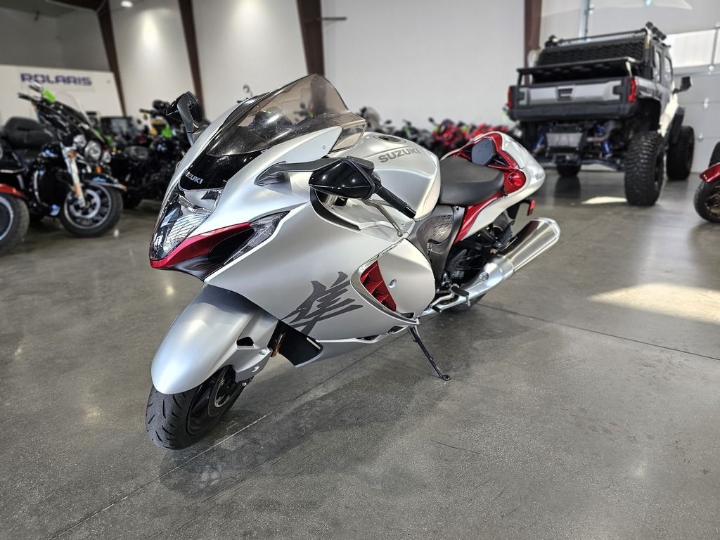 2022 Suzuki Hayabusa SHAPED BY THE WIND Hayabusa… Famed for its abundant power, agility and majestic presence. Legendary for establishing new levels of ultimate sport performance, and for retaining the number one position for the past two decades in the class it created. The 2022 Hayabusa delivers an even smoother ride and nimbler handling via reimagined electronic systems that optimize performance making it more controllable, predictable, and reliable. Like its namesake, the Japanese peregrine falcon, the Hayabusa earns its position as the fastest, most agile predator in the wild. Features may include: POISED AND READY TO FLY The sleek, aerodynamic silhouette is unmistakably that of the Hayabusa. But the modern look of its styling and luxurious attention to the finest details say it’s a whole lot more. The new Hayabusa’s long, low stance screams of the power, performance, poise and keen perceptive abilities possessed by a bird of prey. LEGENDARY POWER AND RELIABILITY Refinements implemented throughout the Hayabusa’s legendary 1,340cm3 liquid-cooled inline-four engine achieve an even better balance of overall performance, yet greater efficiency and durability, while also satisfying Euro 5 emissions standards. A symbol of engineering pride and prowess, it is built to deliver the ultimate riding experience for the long run. SUPERIOR CORE STRENGTH The Hayabusa’s chassis is designed to empower you with sure footing, nimble handling and predictable control that combine to build confidence and enhance the riding experience. It delivers a smooth and comfortable ride that absorbs irregularities in the road surface and responds faithfully to your will, whether barreling down a straight section of road or leaning through corners. THE BEAUTY OF FINE INSTRUMENTATION Riders love the familiar layout and outstanding functionality of the Hayabusa’s instrument cluster. Bigger, bolder numbering on the analog tach and speedometer improve readability, and the new TFT LCD panel includes real-time display of the lean angle (with peak-hold function), front and rear brake pressure, rate of acceleration, and throttle position. OPTIMUM DURABILITY Though the engine is already renowned for its durability and longevity, the following refinements aim to take it to another level. New pistons and connecting rods reduce the weight of moving parts within the engine. Changes to the crankshaft oil passages improve engine lubrication. Attention to detail goes as far as changing the way the engine case bolts are tightened. New styling that pays homage to the Original Suzuki Intelligent Ride Systems (SIRS) for a smoother ride Improved steering stability for high-speed turning agility LED headlights, turn signals and LED rear combination lights Slick LED lighting with position indicators with integrated turn signals. Greater horsepower and torque throughout the low-to-mid speed range