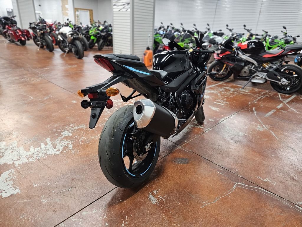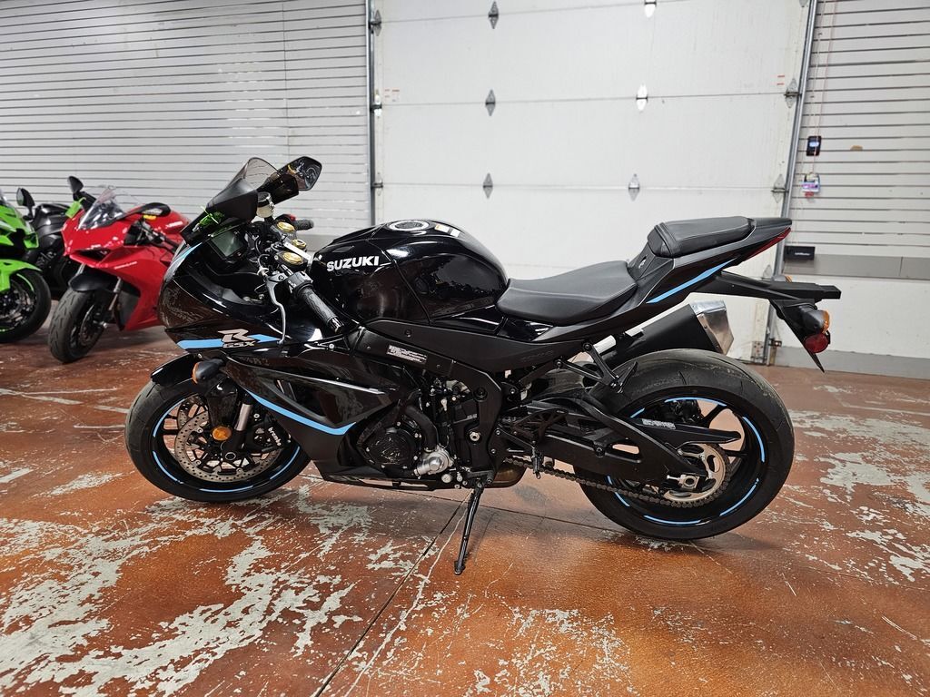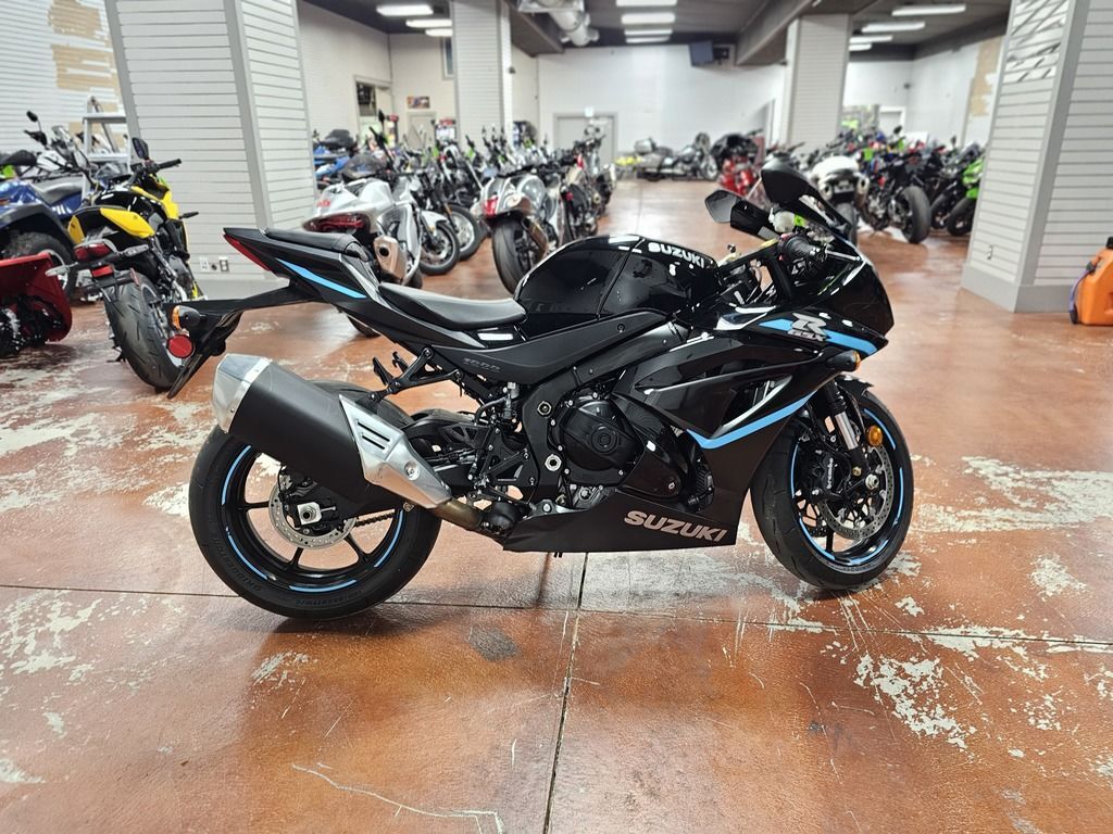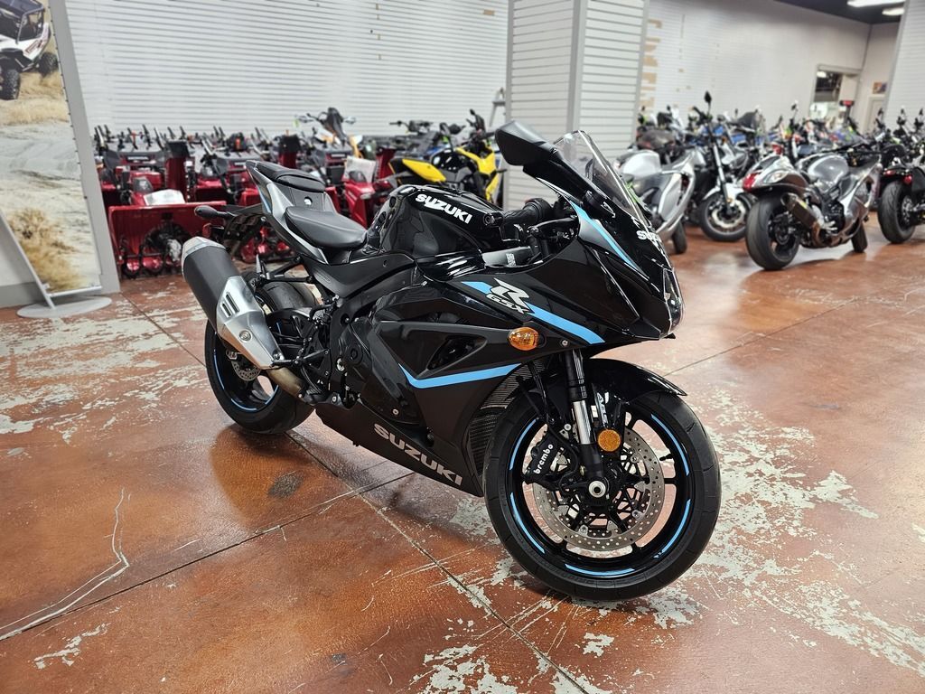 2024 Suzuki GSX-R1000 Suzuki revolutionized the sportbike category with the introduction of the original GSX-R750 in 1985, and then created another milestone in 2001 with the introduction of the GSX-R1000. Using the lithe chassis of the GSX-R750 and a 988cc inline four-cylinder engine design that Suzuki is renowned for, liter-class Superbike performance became available to riders everywhere. A proud member of the GSX-R family of ultra-high-performance motorcycles, the 2024 GSX-R1000’s versatile engine provides class-leading power that is delivered smoothly and controllably across a broad rpm range. Like the original GSX-R1000, the 2024’s compact chassis delivers nimble handling with excellent suspension feel and braking control, ready to conquer a racetrack or cruise a country road. Advanced electronic rider aids such as traction control and a bi-directional quick shifter enhance the riding experience while the distinctive, aerodynamic GSX-R bodywork slices through the wind. Features may include: The 2024 GSX-R1000 arrives in a new Glass Matte Mechanical Gray paint scheme with dark red wheels or the popular Metallic Matte Black No. 2 and Glass Sparkle Black scheme with new, bright blue graphics on the fairing and on the black wheels. Advanced electronics include the Suzuki Bi-Directional Quick Shift System as standard equipment, an Inertia Measurement Unit, S-DMS adjustable engine output, and Traction Control* to increase track and street performance. ENGINE The compact, four-stroke, liquid-cooled, DOHC, 999.8cc, inline-four cylinder engine is designed with a high level of top-end performance plus strong low- to mid-range power. The short-stroke engine has a 76.0mm bore versus a 55.1mm stroke yet is narrower than the prior-generation GSX-R1000 thanks to effective design. TRANSMISSION The GSX-R1000 includes the Suzuki Bi-Directional Quick Shift System which was previously available only on the GSX-R1000R model. This system allows for clutchless upshifts and downshifts when the motorcycle is used in competition. Based on Suzuki’s race-proven close-ratio transmissions, the GSX-R1000 employs vertically staggered shafts to reduce overall engine length. ADVANCED ELECTRONICS A powerful, 32-bit dual processor Engine Control Module (ECM) blends Suzuki’s vast street-going EFI knowledge with the intelligence from Suzuki’s race-winning MotoGP program. GSX-R1000 riders will get sportbike performance without peer while simultaneously receiving polished street manners. The LCD multifunction instrument panel was inspired by the GSX-RR MotoGP dash. This panel is laid out so the rider can easily see the tachometer bar, speedometer digits, and other essential operational information. This effective display is critical, as it is the rider’s interface to the GSX-R1000's advanced electronics. CHASSIS Using lessons learning from Suzuki MotoGP chassis development, the engine angle of the GSX-R1000 was rotated backward six degrees. This had the joint effect of reducing the distance of the fork to the center of the chassis by 20 mm and increasing the swingarm length by 40 mm. This increases chassis stability and improves aerodynamics. The aluminum Superbike-braced swingarm has equalized bracing to the main beams to provide balanced support and movement to the shock absorber, improving racetrack handling while conveying a consistent suspension feel to the rider. ELECTRICAL Controller Area Network wire harness (CAN Bus) allows for fast and precise communications between all of the GSX-R1000’s electronic systems. With a CAN Bus system, riders will experience swift and trouble-free electronic system operation while the size and complexity of the wiring are simplified.