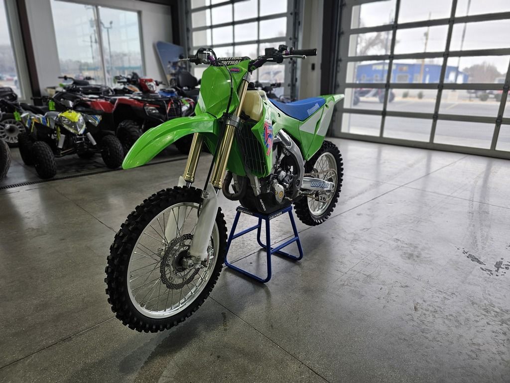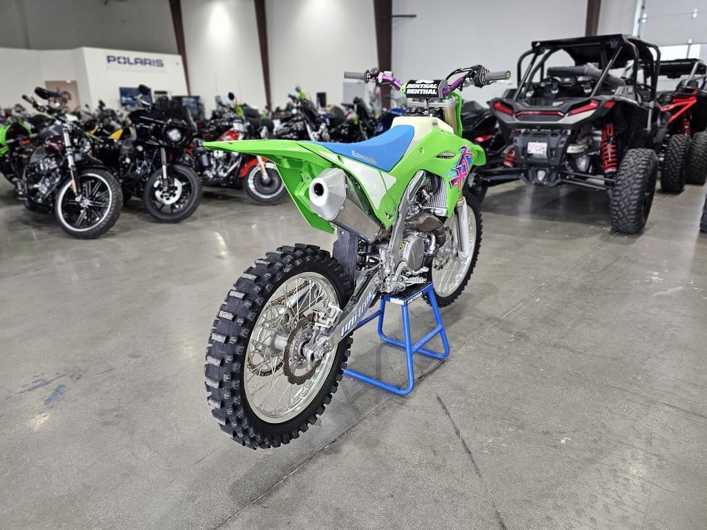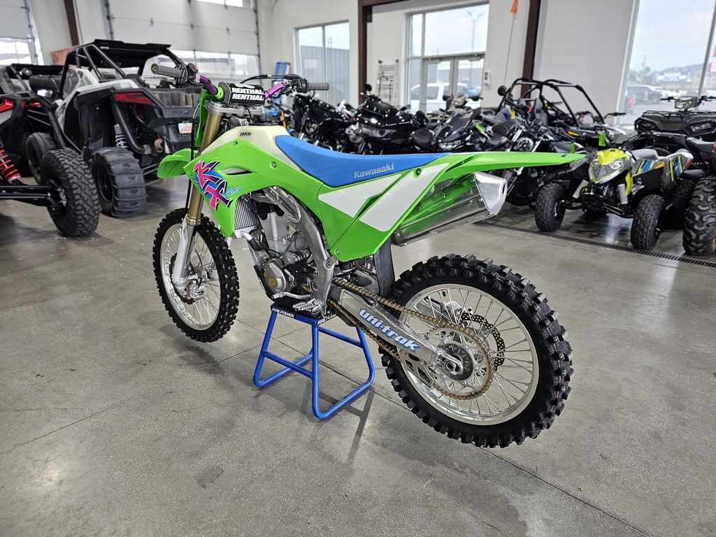 Used 2024 Kawasaki KX450 Dirt Bike For Sale In Salt Lake City, UT This Pre-Owned 2024 Kawasaki KX450 Dirt Bike is for sale at Karl Malone Powersports SLC conveniently located in Salt Lake City, Utah. Our knowledgeable team is eager to assist you, so don’t hesitate to contact us today to schedule an appointment. If this isn't the exact Kawasaki Dirt Bike you're looking for don't hesitate to go back and revise your search. We're sure to have the perfect Dirt Bike for you in our showroom in Utah. We invite you to visit us at Utah’s premier Kawasaki dealer for new and pre-owned Dirt Bikes for sale. Let us help you find the ideal Dirt Bike to take home today! Karl Malone Powersports SLC Address: 1379 W 3300 S, Salt Lake City, UT 84119 Phone: (801) 972-8725 2024 Kawasaki KX450 The KX™ legacy represents a long line of champions. The drive to produce more has not slowed down. Our all-new flagship race machine, the KX™450 motorcycle, offers next-level engineering and power to dominate the track. Over the decades, we've learned what it takes to win and stay on top. The KX450 embodies this legacy to the fullest. Features may include: POWER & PERFORMANCE BUILT TO WIN The updated KX™450 engine delivers broad, useable torque and strong, responsive power across the rev range. From the starting gate to the finish line, this race-ready machine is built to stay ahead of the pack. RACE-READY SUSPENSION LEAVE THEM IN THE DUST Take the lead with proven race-winning performance. The highly adjustable suspension package delivers smooth action, firm damping, and contributes to optimal traction. ADVANCED TECHNOLOGY RIDE WITH CONFIDENCE With traction adjustability and power mode control at your fingertips, the KX™450 motorcycle offers superior features designed to inspire confidence. What's more, this race-ready machine is backed by decades of championship-proven experience. CHASSIS & ERGONOMICS MADE TO SHAVE LAP TIMES Experience the race-winning advantage of a strong and lightweight chassis, agile handling, and exclusive ERGO-FIT® technology. ADDITIONAL NEW lightweight aluminum perimeter frame for improved handling NEW muffler position for improved mass centralization NEW ODI lock-on grips NEW quick-release side cover offers tool-less air filter access NEW radiator shrouds shape for improved riding position NEW rear fender Coned Disc-Spring Hydraulic Clutch