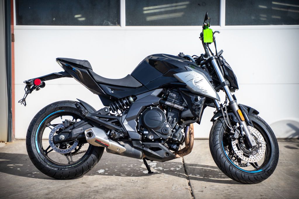 2022 CFMoto 650NK MORE RIDE ABILITY The 650NK gives you everything you’re looking for in a midsize motorcycle—modern styling, great comfort, and refined performance. This motorcycle is a pleasure to ride all day long. The meticulously engineered 649cc parallel twin keeps giving. And thanks to the sport-tuned suspension, you can keep taking all the curves you want. With this motorcycle it’s time to take your riding ability to a new level. Features may include: Carving corners requires attention to detail that doesn’t cut any corners. We started with a great foundation—a rigid, high-carbon steel frame. Housed in the belly of the beast is a 649cc engine paired with a buttery smooth 6-speed gearbox. A slipper clutch is a great friend to those who enjoy aggressive downshifts. Top-shelf J.Juan brakes and Pirelli Angle GT tires hint at the level of rider you have the potential to be. TFT Display The 650NK features a large, 5-inch TFT display. Bright sunshine? You’ll have no issues with glare. Overcast skies? Screen brightness adjusts automatically. The full-color LCD instrument display delivers at-a-glance information, including rpm, gear, speed, even phone connectivity. Two interfaces differentiate your riding modes. Pirelli Tires The Pirelli Angle GT was chosen for its excellent feel, high degree of stability, and excellent wear characteristics. What’s more, it performs superbly in cold and wet conditions. This is your racetrack-capable sport touring tire perfectly capable on any paved road you have in mind. CF-SC Slipper Clutch Downshift as you enter a corner. Upshift, and accelerate as you exit. The slipper clutch makes the transition seamless. When downshifting from higher speeds, the slipper clutch reduces engine braking force. Engine speed quickly matches motorcycle speed—no need to worry about rear wheel hop. Engine Power is central to your riding experience. And 60 horsepower makes the 650NK the middleweight champion. The 649cc parallel twin is a DOHC, 4-valve per cylinder design. Liquid cooling keeps engine temperatures where they should for optimal performance. BOSCH EFI System BOSCH is one of the world’s most respected names in electronic fuel injection. The BOSCH EFI system chosen for the 650NK contributes to effortless riding. Enjoy quick starts at lower temperatures, instant throttle response, lower emissions, and excellent fuel consumption. Semi-Dry Sump The semi-dry sump provides the bike with continuous lubrication. The engine is never starved of oil at those critical times when lubrication is so critical. At 8750 rpm, your engine will be screaming with joy, not pain. LED Lights See and be seen. You’re not just lighting the road. You’re a beacon of light for others to see. The bike’s LED headlights provide optimum visibility and a clean aesthetic. KYB Suspension Components If you’re keen on leaning into corners, you’ll be happy to hear about this suspension. We paired a KYB telescopic fork with a KYB rear monoshock for performance that’s highly responsive to rider input. J.Juan Brake System Great brakes make you a better rider and inspire more confidence. That’s why we chose these binders from J.Juan for the 650NK. Up front you get a pair of 300mm discs, each with a 2-piston caliper. The rear is a 240mm disc sporting a beefy single-caliper piston.