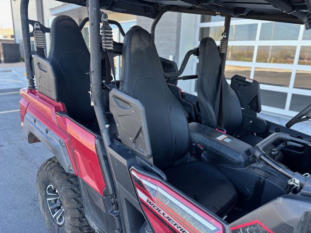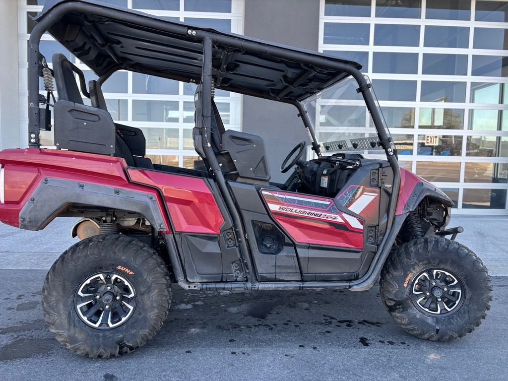 Used 2019 Yamaha Wolverine X4 Side by Side UTV For Sale In Salt Lake City, UT This Pre-Owned 2019 Yamaha Wolverine X4 Side by Side UTV is for sale at Karl Malone Powersports SLC conveniently located in Salt Lake City, Utah. Our knowledgeable team is eager to assist you, so don’t hesitate to contact us today to schedule an appointment. If this isn't the exact Yamaha Side by Side UTV you're looking for don't hesitate to go back and revise your search. We're sure to have the perfect Side by Side UTV for you in our showroom in Utah. We invite you to visit us at Utah’s premier Yamaha dealer for new and pre-owned Side by Side UTVs for sale. Let us help you find the ideal Side by Side UTV to take home today! Karl Malone Powersports SLC Address: 1379 W 3300 S, Salt Lake City, UT 84119 Phone: (801) 972-8725 2019 Yamaha Wolverine X4 FOUR ADVENTURE- SEEKERS REALize your 4-Seat Adventures in the new Wolverine X4. Proven Off-Road to take everyone and everything they might need anywhere. Features may include: Capability Smooth and Powerful Twin-Cylinder Engine The Wolverine X4 is powered by an 847cc DOHC, eight-valve, parallel twin-cylinder motor that features the full range of Yamaha’s advanced performance technologies. Forged pistons and connecting rods ensure durable high-rpm performance, with Yamaha’s 270° Crossplane Concept Crankshaft for linear torque development and excellent power throughout the rpm range. To improve efficiency, the engine features a dry-sump design for a more compact layout and offset cylinder block to reduce friction loss, while rubber engine mounts and a geared counterbalancer ensures smooth running from idle to redline. Ultramatic Transmission Yamaha’s Ultramatic transmission is the most advanced—and durable—CVT drive system available. An automatic centrifugal clutch maintains constant belt tension for reduced belt wear and a sprag clutch delivers natural all-wheel engine braking. In the Wolverine X4, a robust clutching system features an oversized belt for durability under aggressive riding, while still maintaining low cruising rpm for smooth, quiet running. On-Command 4WD Yamaha’s renowned On-Command 4WD system lets you switch between 2WD, limited-slip 4WD and a fully locked differential 4WD. Unlike competitors’ automatic 4WD systems, On-Command puts the driver in full control to make the most of available traction in any sort of terrain. Comfort Smooth, Quiet Powertrain Thanks to spiral- and helical-cut drivetrain gearing, the rubber-mounted and counterbalanced engine, and a variety of noise- and vibration-reducing inserts around the cabin, the Wolverine X4 is one of the smoothest and quietest recreational side-by-sides ever built. Sneak through trails without disturbing nearby animals, or simply enjoy the improved refinement after a long day riding on the trail. Roomy Four-Person Cabin With four high-backed seats, each with shoulder bo