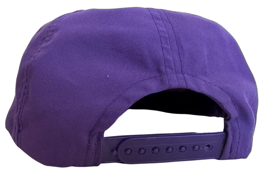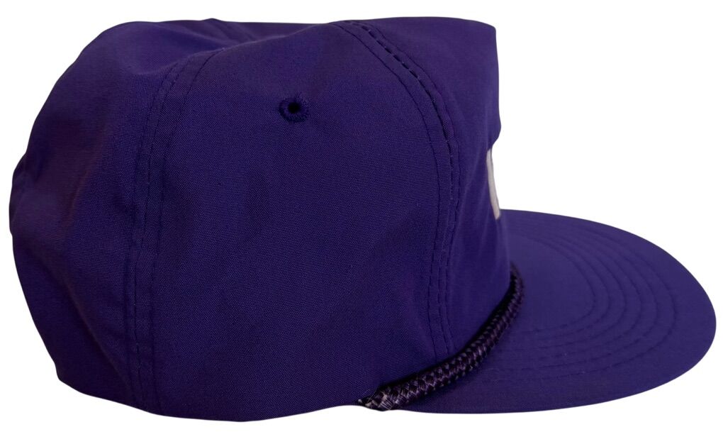 This Vintage 1980's Welch's Soft Drinks Flat Brim Purple Rope Snapback by Designer Award Headwear is a stylish and timeless accessory for both men and women. The hat features a solid purple color with a lightweight and packable design, making it perfect for travel, activewear, parties, casual outings, and workwear. The adjustable snapback style and rope accent add a classic touch to the vintage hat, while the nylon and cotton material ensure durability and comfort. Perfect for any season, this snapback is a must-have for those who appreciate retro fashion and nostalgia.