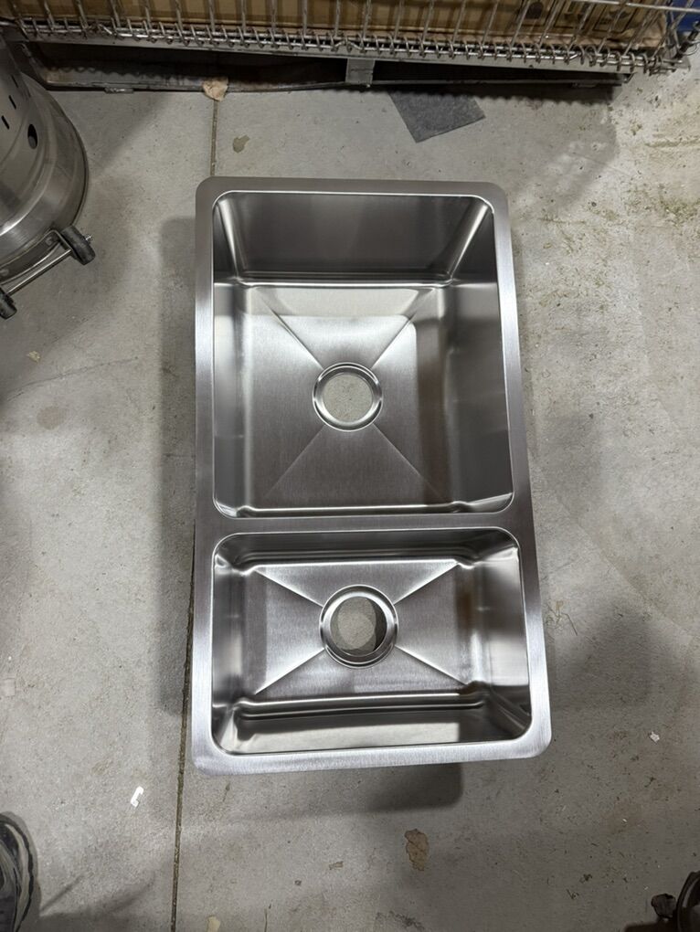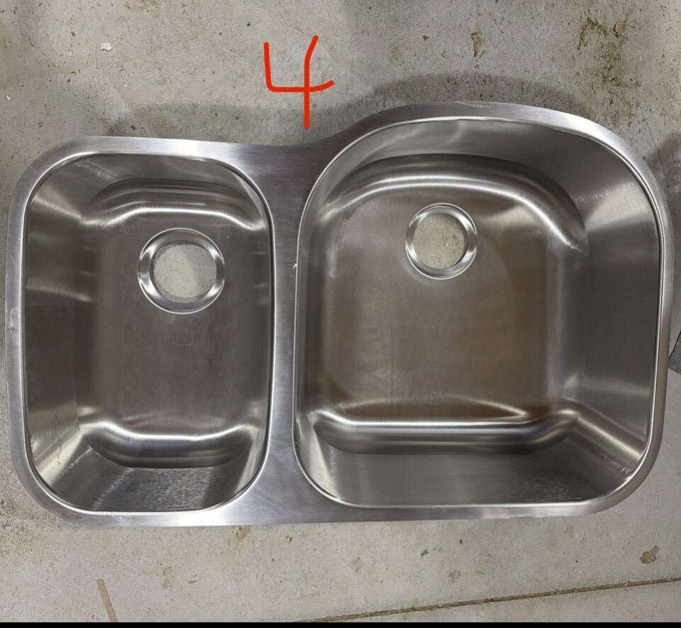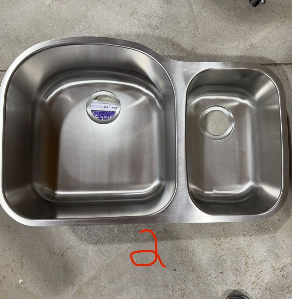 Sink 4 70/30 Stainless Steel Undermount Kitchen Sink, 16ga 31” wide 20” front to back Big basin 17 3/4“ wide 18” front to back 8 1/2” deep Small basin 10 3/4” wide 16” front to back 6” deep