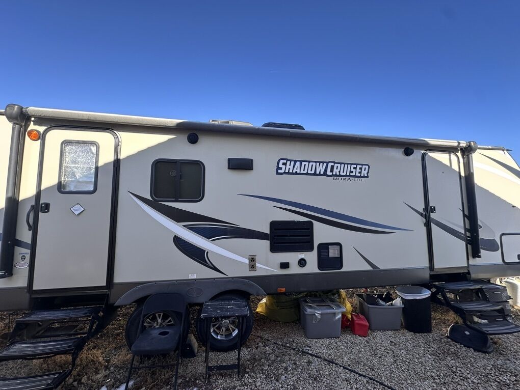 Shadow cruiser 2018 Model : 289 RBS Comes with 2 bed rooms and 1.5 bathrooms (large shower)! Sleeps 6-7 people Queen size bed and bunk beds 2 slide outs thar make a spacious area Winterized Tons of storage Great condition and well maintained (brand new door, AC filters, etc) Full propane tanks Large sink Large awning for the summer Easy to use and understand Comes with solar panels for off grid camping