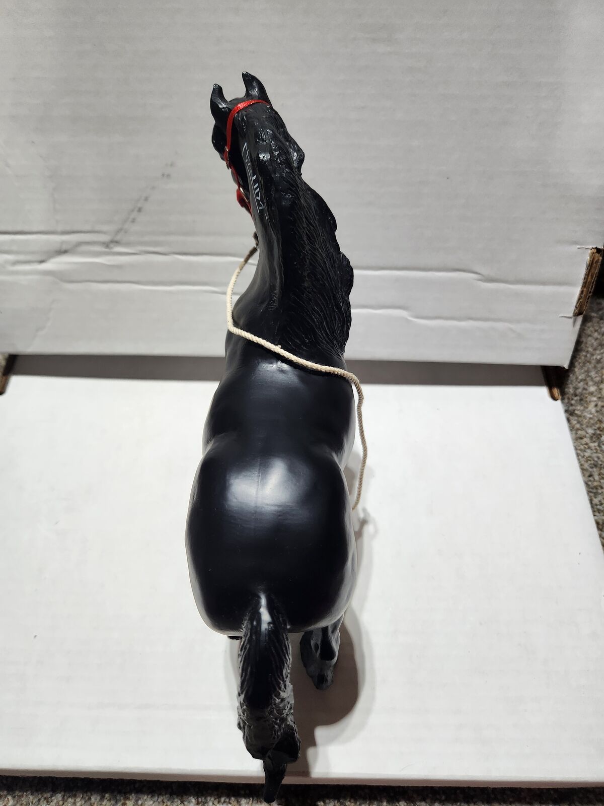 VenmoBreyer horse #943 JB andrew. Includes a red halter. This horse has been lovingly stored in a smoke-free home and is in excellent condition. I am downsizing my collection. The halter is removable.