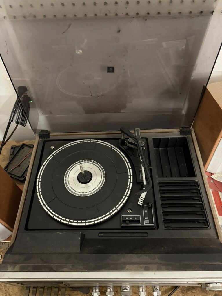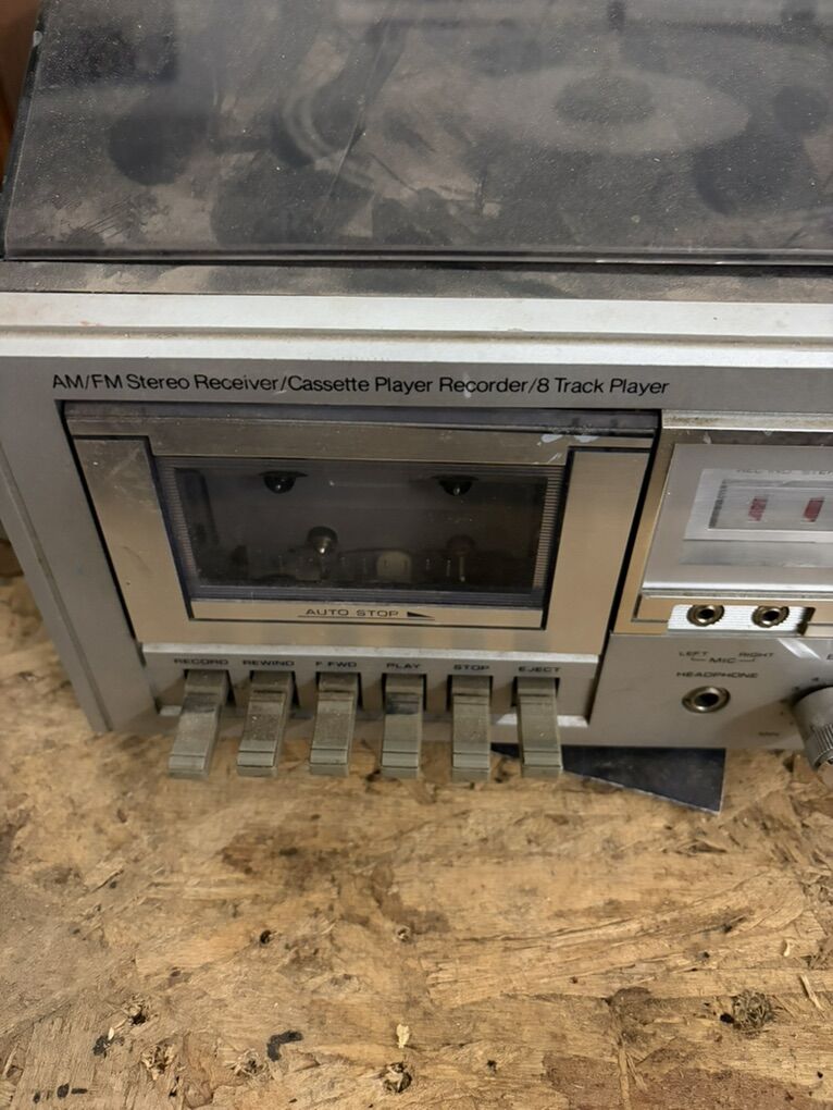 Stereo radio receiver unit. Speakers and AM/FM work great. Record, 8 track, cassette either don’t play, or play poorly. Had it working great a summer ago.. likely needs cleaned. Local pickup in Wendell, Idaho