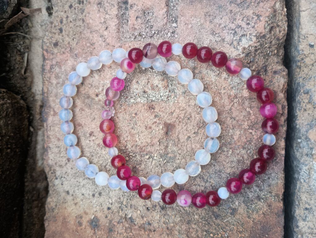 Maroon Tourmaline with Opal Bracelet wrist size 7" to 10"