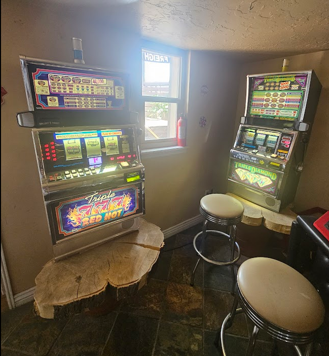 2 slot machines, bar and stools. Lots of fun if you do not want to drive to Wendover, Mesquite or Vegas. Downtown Salt Lake. They both work great. Bar was custom built. I paid $1900 for both slots a year ago and I want to sell them together not seperate. Whoever takes the bar will love it. Downtown Salt Lake.