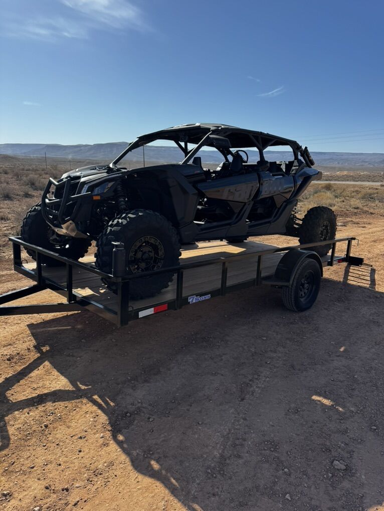 Selling my practically new Can Am 4 seater with smart shocks and comfort ride side by side. Less than 25 hours and less than 325 miles. New Trailer included. Cover included. Four Cardo Headsets included. Street ready. Rear cargo bin mounted. Front extended bumper. Always garaged. 5 point seat belts. Recently serviced. Turn key and ready to hit the trails.