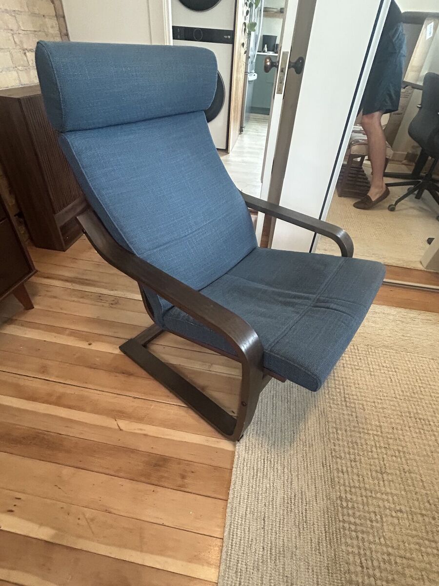 ZelleBlue Ikea POÄNG armchair. In generally good condition. $50 OBO https://www.ikea.com/us/en/p/poaeng-armchair-brown-gunnared-blue-s09502144/#content