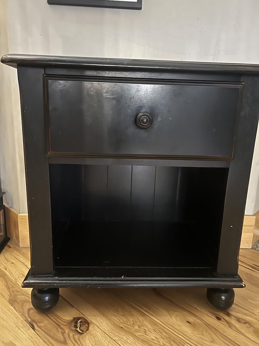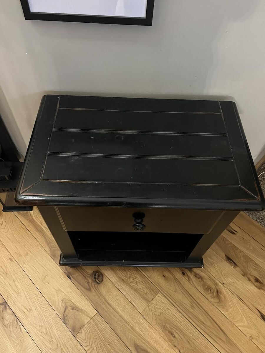 VenmoBeautiful 11 drawer solid wood black distressed dresser and matching night stands. One bottom drawer has to be fixed but it is in good condition. 2 night satnds are in great condition.