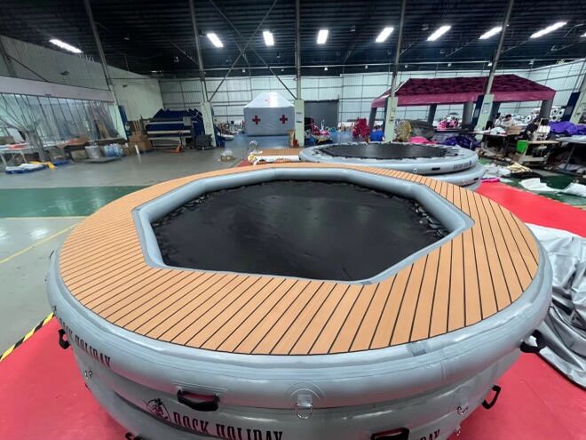 Features: • 12’ x 12’ floating footprint • Commercial-grade PVC construction for long-term durability • Premium brown EVA deck – soft, grippy, and sun-resistant • Heavy-duty mesh hammock center • Thick bungee rope suspension system for strength and flexibility • Ideal for lounging, swimming, and entertaining