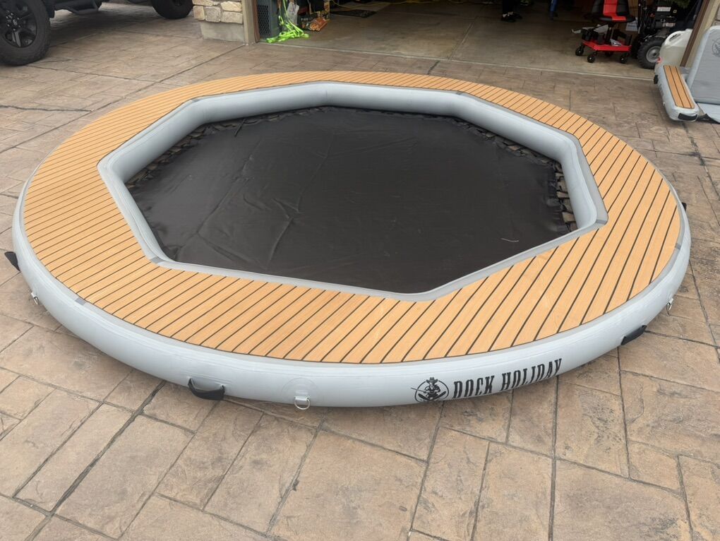 Built at a spacious 12 ft x 12 ft, this dock is crafted from commercial-grade PVC, engineered to handle long days on the water, repeated use, and real lake-life conditions. The perimeter features an extremely durable brown EVA deck, offering a soft, non-slip surface that stays comfortable under bare feet and cool under the sun.