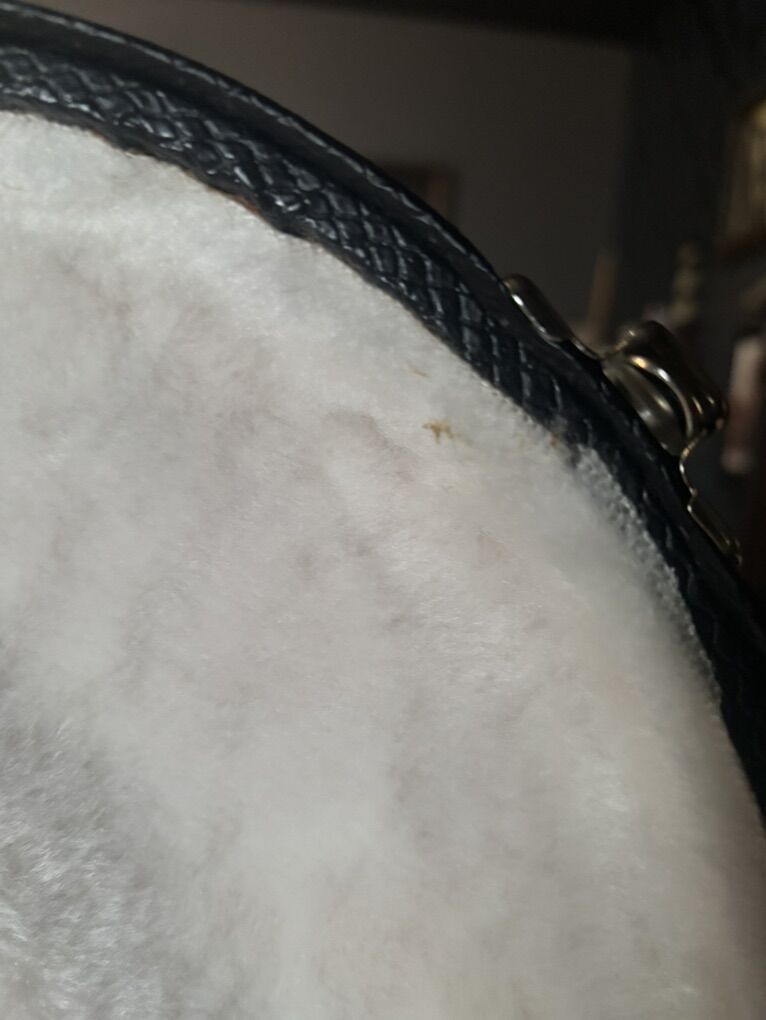 Solid hard case, though there are some blemishes here and there, which include a couple of glue stains on the plush (lower bout and near one of the latches) as well as a small scuff on the top. I tried to document these in the photos as best as I could.