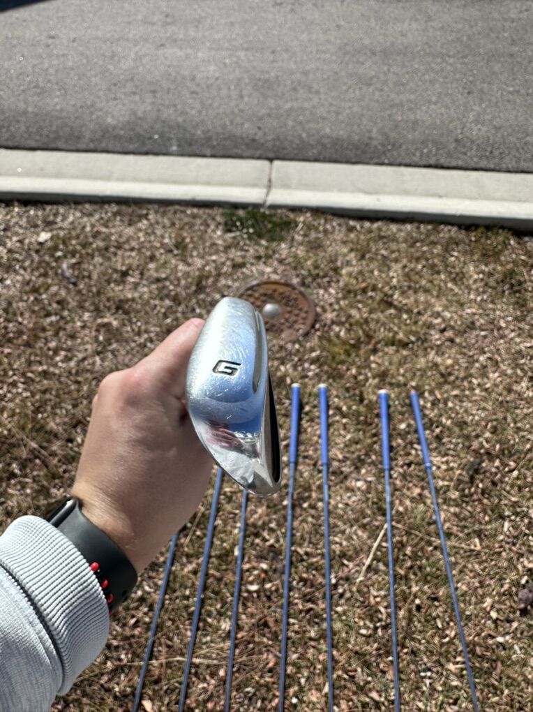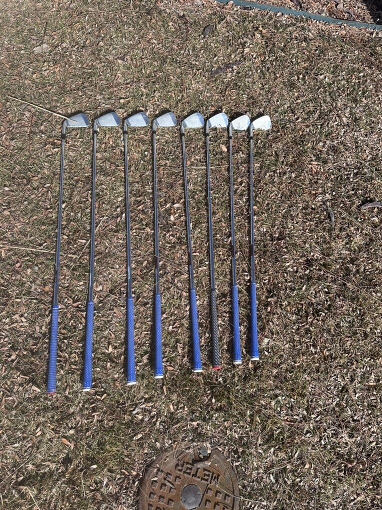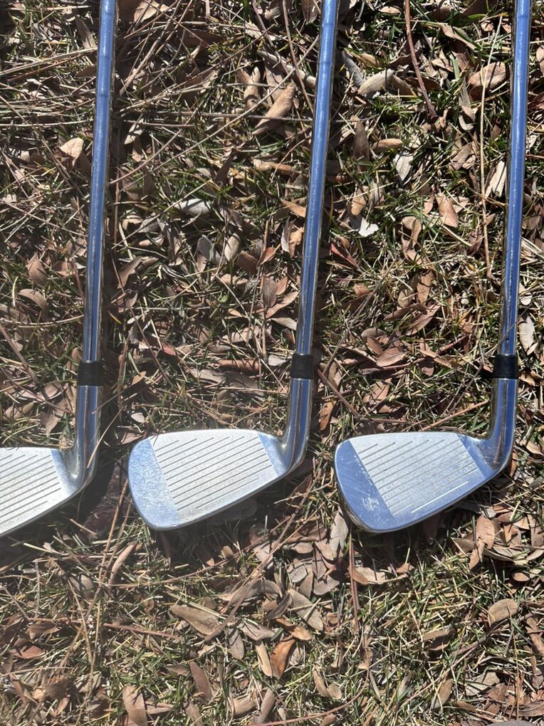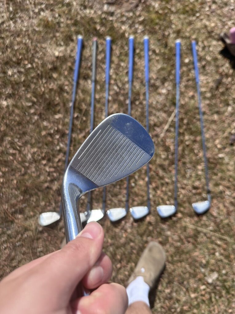 Clubs are in good condition with normal wear from play. Grooves are solid and plenty of life left. Ready to go for the upcoming season.