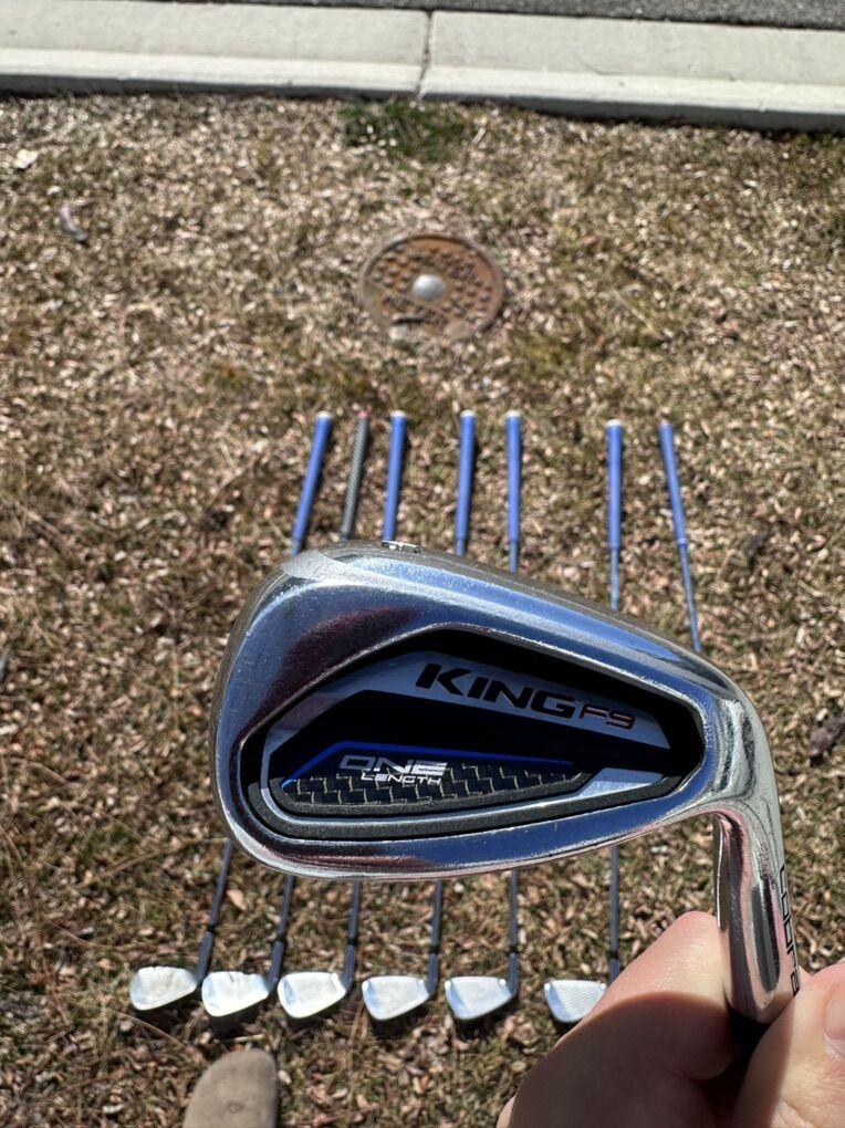 VenmoSelling my Cobra King F9 One Length iron set, 4 iron through Gap Wedge. All irons are the same length (7-iron length), which promotes consistency, easier setup, and more repeatable ball striking.