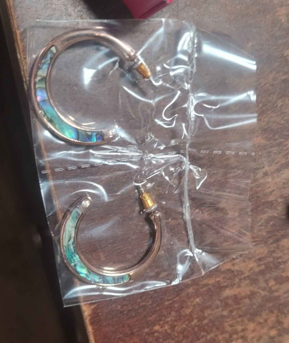 new abalone hoop earrings in unopened plastic with original packaging $10 cash Pick up in Ogden Utah