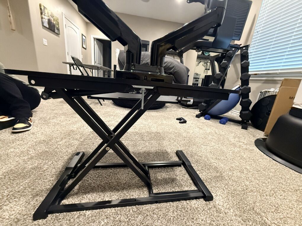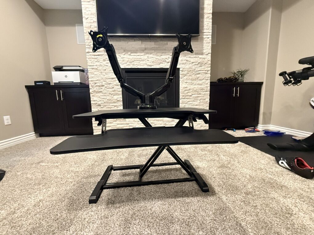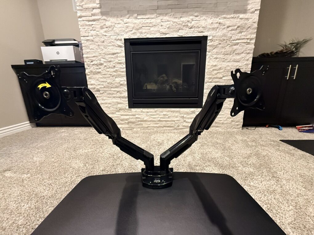 VenmoStanding Desk with two monitor mounts.