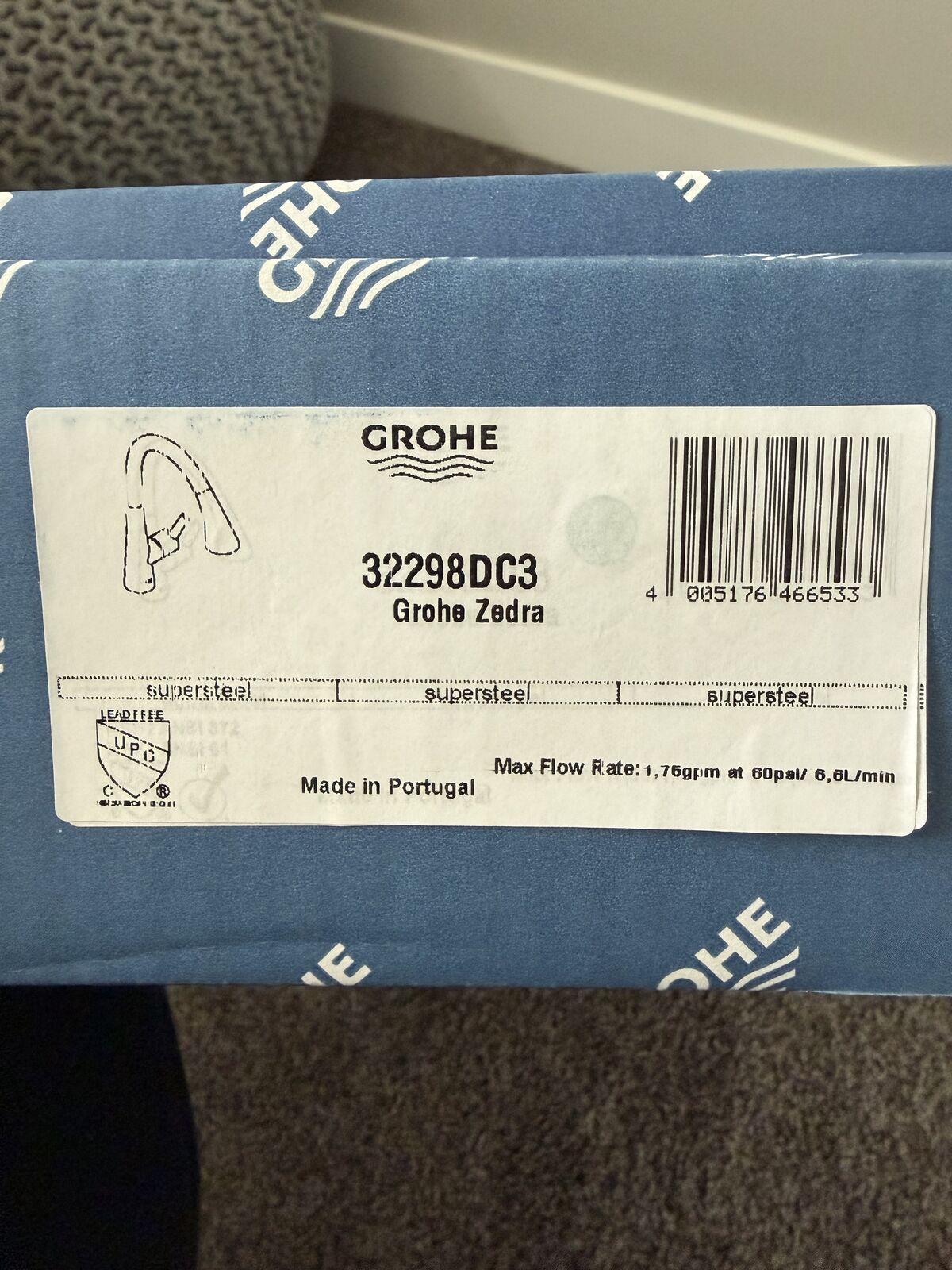 ApplePayBrand new Grohe Zedra kitchen faucet in SuperSteel finish. Never installed and includes all original parts, hoses, and instructions. I have three of them - will sell together or separately.