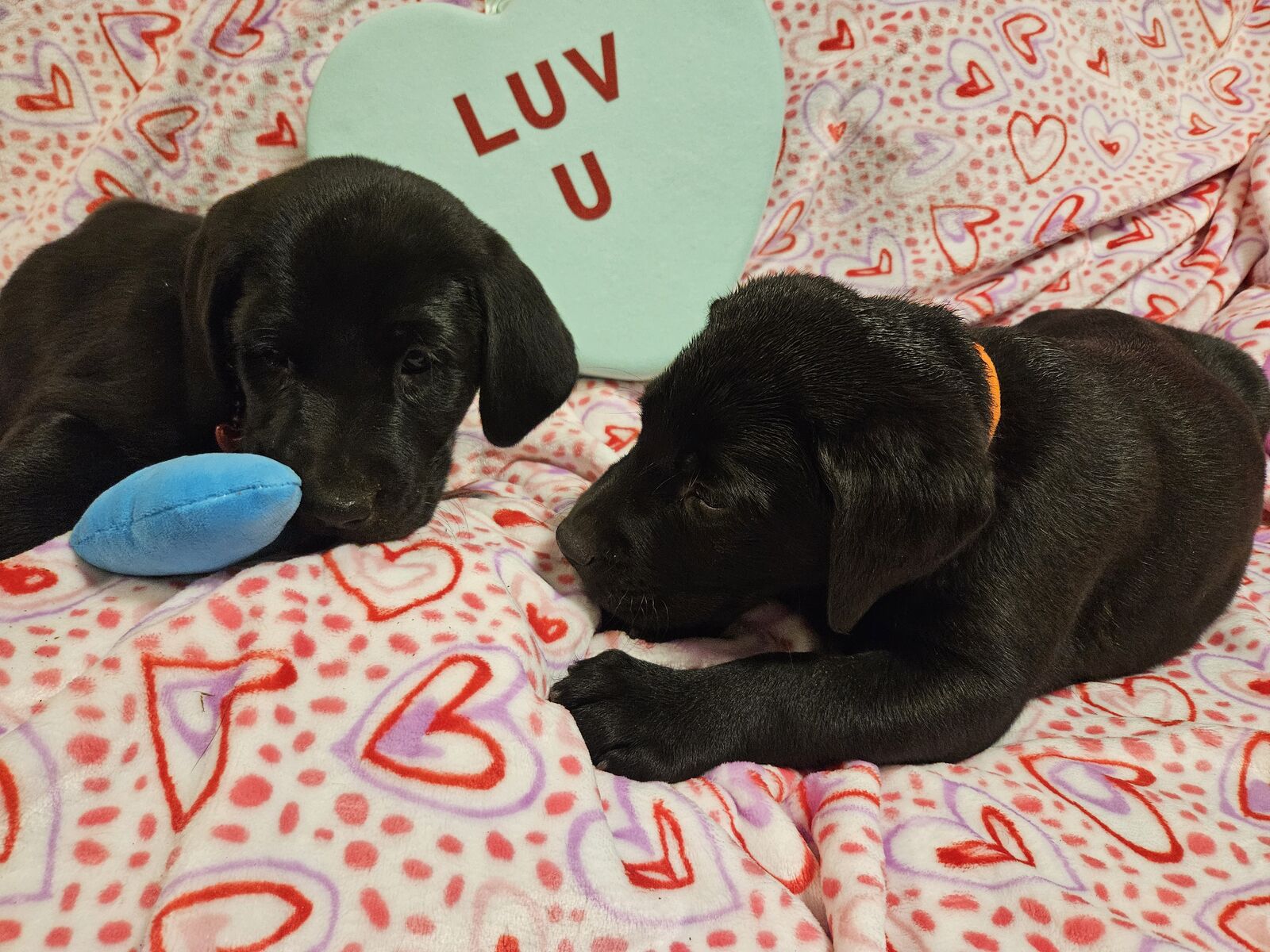Gryffin and Poppy are both retrievers at heart and will fetch all day if you let them. Gryffin loves to work, while Poppy is our cuddle bug.