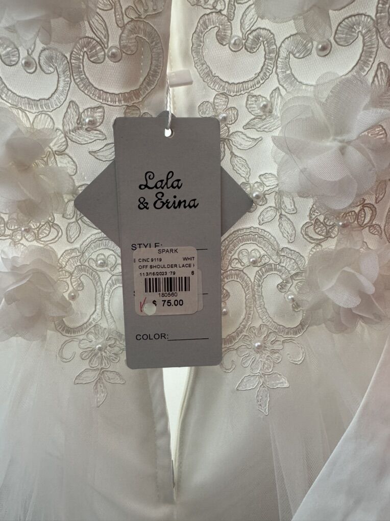 Lola & Erina girls size 6 off shoulder lace embroidered dress. Never worn