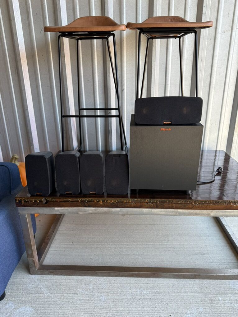 ApplePaySpeakers work great and are in excellent condition. They have had very minimal use. Purchased from Costco 3-4 years ago. Wireless subwoofer included. Willing to sell Sony 5.1 receiver with it for extra $75 but willing to sell separately as well.