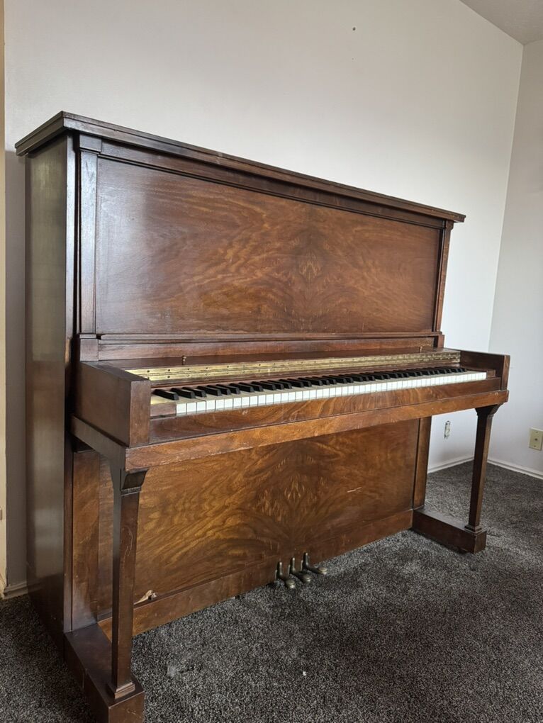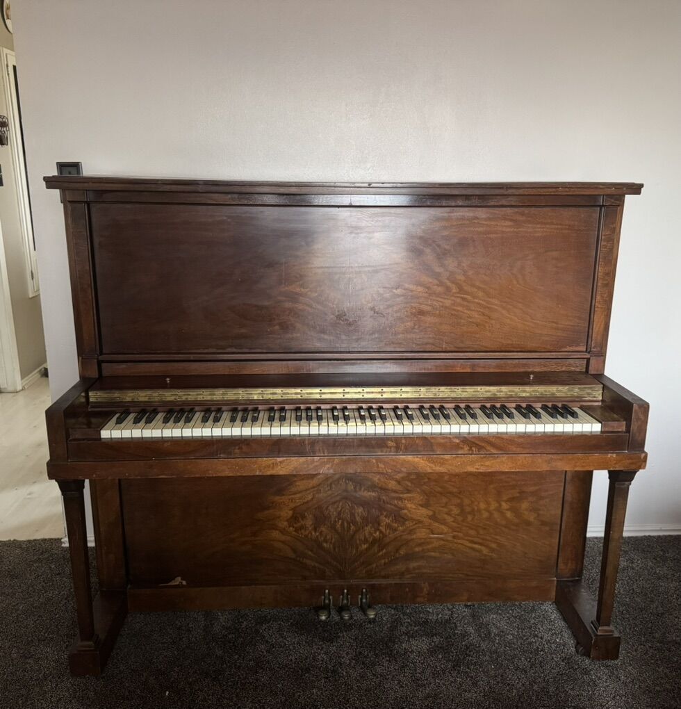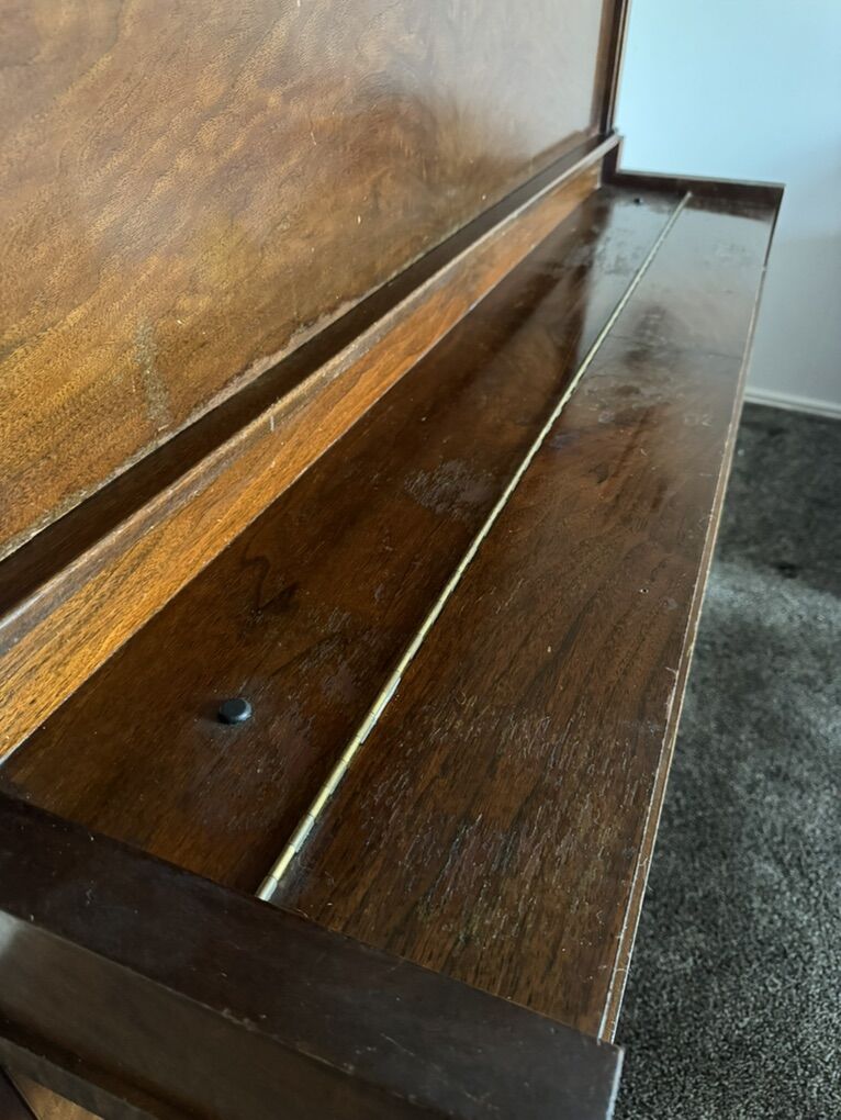 There are also a few additional dings and surface scratches consistent with age and normal use. It’s an older piano with lived-in character and vintage charm, but all keys and pedals remain solid and fully playable.