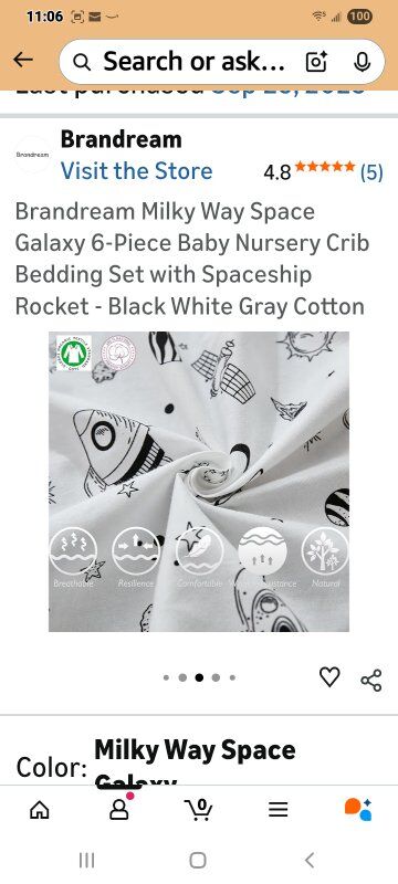 SizeMulti-piece Set Included ComponentsBed Skirt, Comforter, Pillow Cover, crib sheet, window valance, diaper stacker ColorMilky Way Space Galaxy StyleOuter Space, Galaxy BrandBrandream ThemeSpace [Wonderful Design by Brandream]Update their sleep space for the coolest bedding in the galaxy. Astronauts explore the mysteries in space. It's AMAZING! With beautiful details on the planet, spaceship and rocket, and not-to-miss comets and asteroid belt, this bedding set create a bedroom filled with imagination and adventure. Let the countdown to bedtime begin! WOW! I love the bedding set! THANK YOU MOM :) Every boy and girl have a space dream, we design the space adventure theme for your baby,let your baby's dream become true. 6-piece boys nursery bedding set includes: crib comforter, crib sheet, 4-side crib bed skirt with 16" drop, window valance, diaper stacker, Pillowcase(14*14inch) for Bedroom Sofa Bed Decoration [COZY] Baby Comforter is Milky Way Space Galaxy design, expertly stitched by hand and hand-tufted. HIGH-QUALITY and IMAGINATIVE. MAGICALCrib Bed Skirt is 1-tier and 4-side, fits around the entire crib and is tailored with split corners for easy placement around posts. WHIMSICAL and ETHEREAL. CONVENIENTCrib fitted sheet has elastic around the entire edge for added safety. No matter how you combine these nursery essentials, you and baby are sure to dig it!