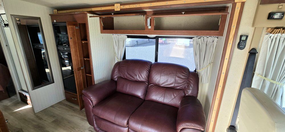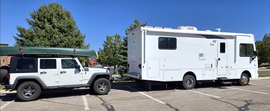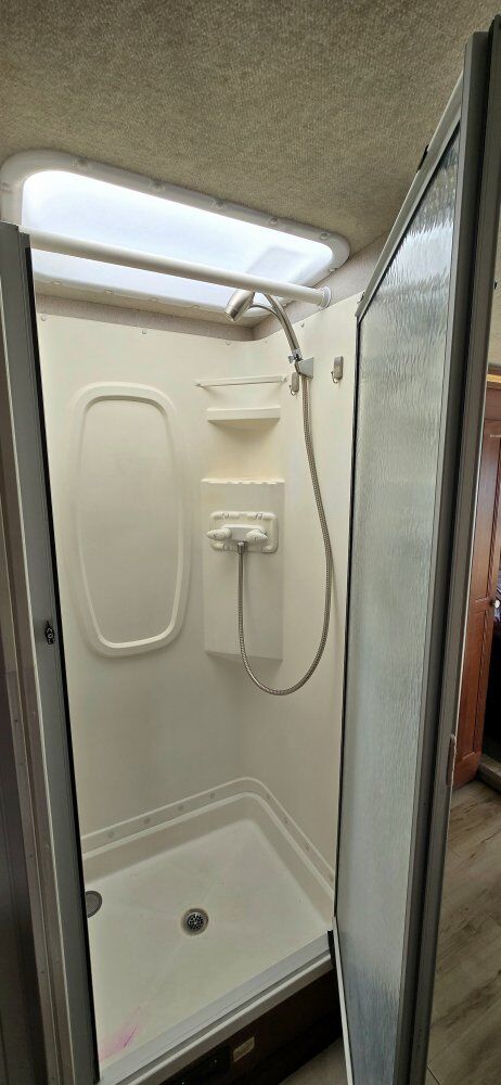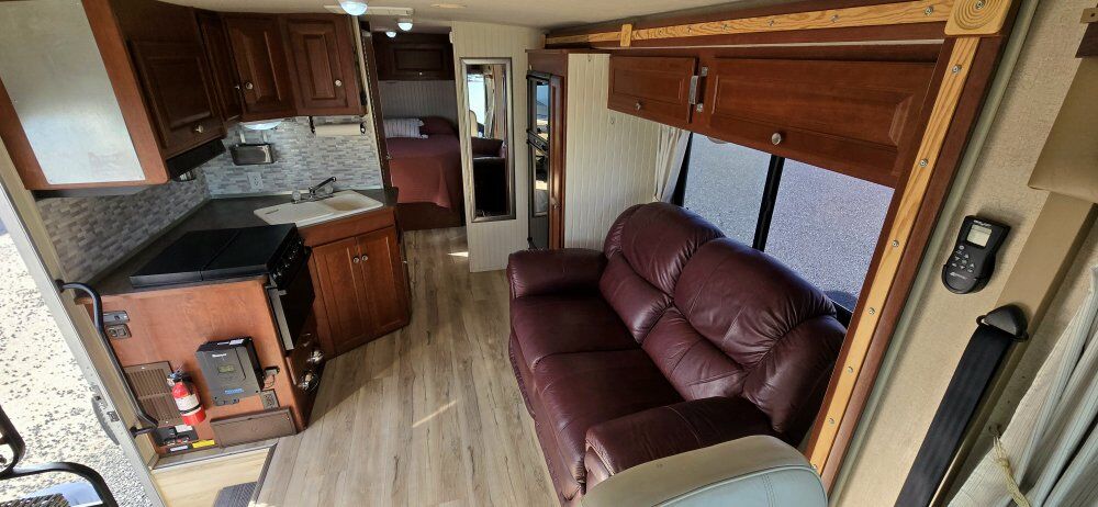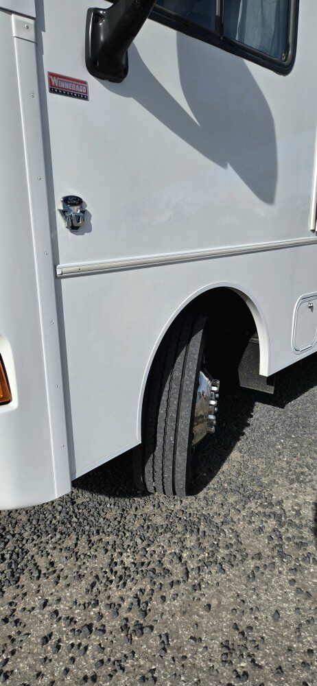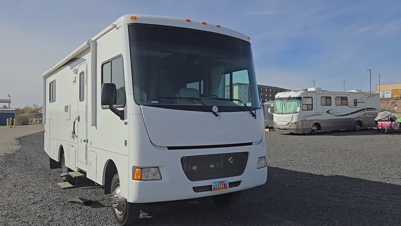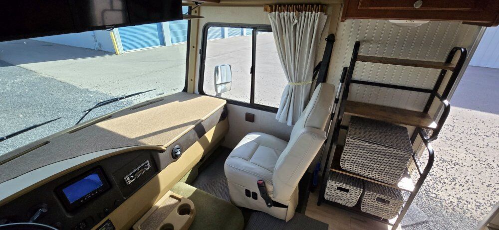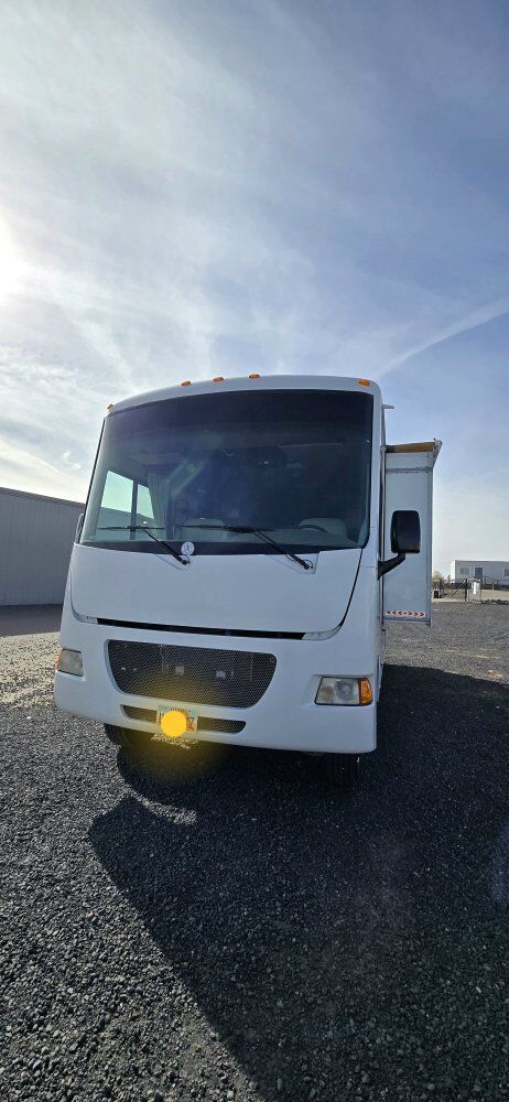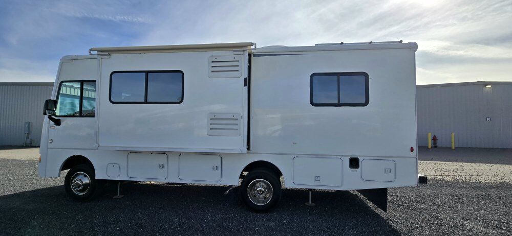 This Class A motorhome is only 27' long. It is short enough to easily park in those smaller camping spots. It has a Ford V10 gas engine with 32,200 miles on it. It is set up for off-grid camping with a solar system which includes 600 watts of panels on the roof, 60A Renogy Solar Charge Controller, a 3000W Renogy Pure Sine Wave Inverter, and 3-100Ah Lithium Batteries. It has hydraulic self-leveling jacks, 60-gallon fresh water, 43-gallon black and 38-gallon gray tanks. It has an Onan on-board generator with low hours, furnace, air conditioner, and fantastic fan. 1 slide out and a 19' awning. There is plenty of exterior storage. The interior of this unit has been fully remodeled. Everything is in good working condition. Both the driver's and passenger seats swivel for more seating. This rig is ready for your adventures and spring is knocking at the door. Come take a look!