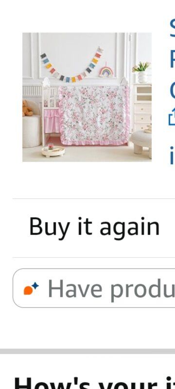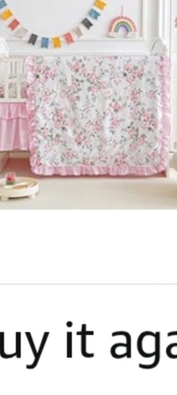 Size3 Pieces Crib Included ComponentsQuilted Comforter, Fitted Sheet, Bed Skirt ColorPink StyleThemed BrandShxime ThemeShxime Crib Bedding Set Material:Designed for your baby's comfort and safety, our comforter is made in a certified factory from eco-friendly polyester. The soft 90 GSM outer fabric and plush 320 GSM inner fill create a breathable, lightweight, yet cozy barrier. This durable, easy-care comforter provides the perfect warmth for a peaceful slumber all year long. Package:Quilted Comforter 34"x 43" with 2 inch Ruffle ; 1 Fitted sheet 28"x52"+ 8" fits a standard size crib mattress, The crib bed skirt is 1 crib skirt 28"x52"+ 14”. The 3 pc crib set will fits most crib bedding. Try a new cute ruffle design for your baby. Design: Embrace a charming American country aesthetic! The heart of this set is a comforter adorned with delightful colorful flowers and a cute 2-inch ruffle, suitable for both boys and girls. It's perfectly coordinated with a matching ruffled bed skirt and a contrasting green plaid sheet. This cute and colorful set, with its soothing palette, promises sweet dreams for your baby and is an wonderfully fresh choice for spring. Easy Cleaning & Care:Machine wash separately in cold water (gentle cycle). Tumble dry on low heat. Iron on low heat if needed. Use only non-chlorine bleach when necessary. Important: Do not dry clean.
