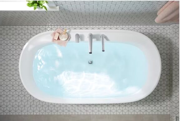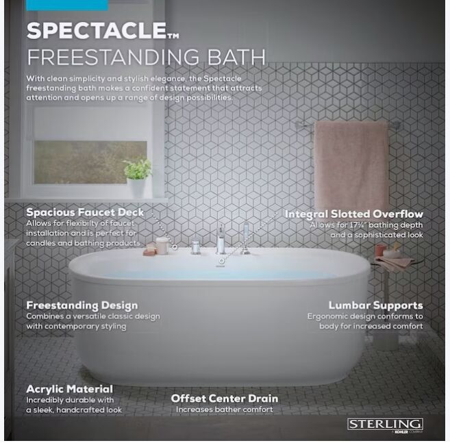 65.75” Flatbottom Soaking Tub – deep, comfortable design for a true relaxing soak Modern freestanding style – clean lines that elevate any bathroom instantly Durable acrylic construction – lightweight yet strong, easy to install Bright white finish – timeless and works with any design style Brand new – never installed