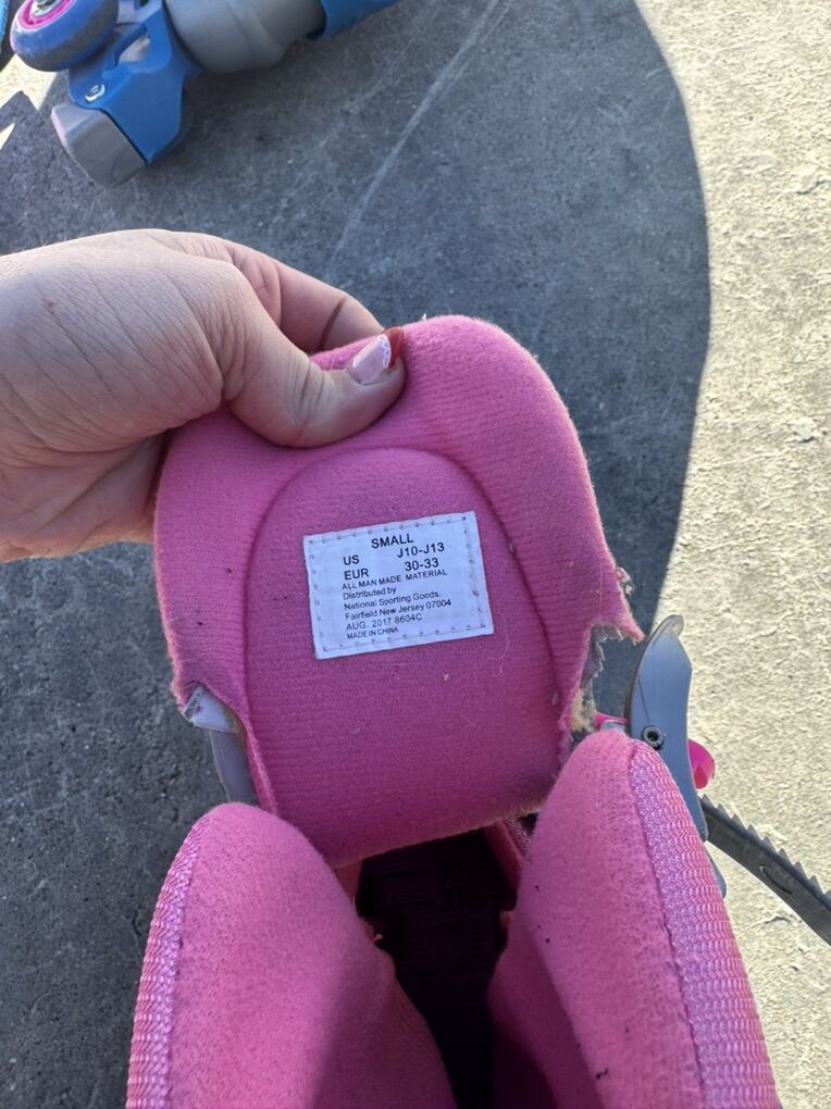 VenmoAdjustable kids training roller skates. Size 10-13. Includes knee and elbow pads for safety.