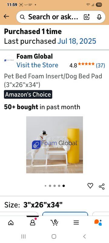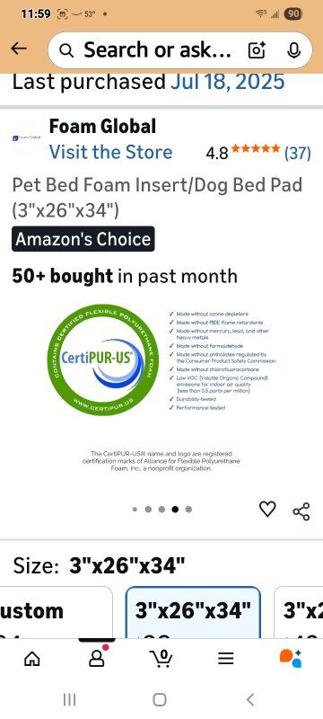 BrandFoam Global Breed RecommendationAll Breed Sizes Special FeatureCooling, Hypoallergenic, Orthopedic MaterialMemory Foam Product Dimensions34"L x 26"W x 3"Th Fill MaterialMemory Foam Orthopedic Foam : Dual layer pet bed for comfort and support. CertiPUR-US : This pet bed contains CertiPUR-US certified foam. This means our foam is free from harmful chemicals and gasses. Made In USA : Our foam is proudly made in America.