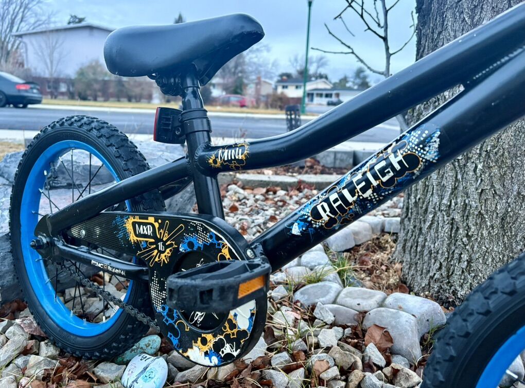 16” Raleigh mxr BMX bike. The bike is in great condition and ready to ride. Has excellent tires with tons of traction. I have also added $20 worth of self sealing slime tubes to the bike so that you don’t have to worry about getting flat tires. Step backwards to stop. Bike is kid used so it has the normal scuffs on it that you might expect. Bike is located in Orem. Cash only please.