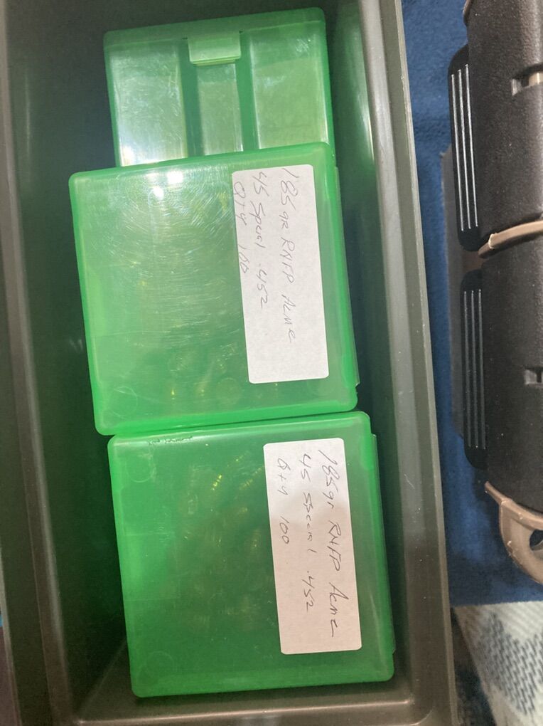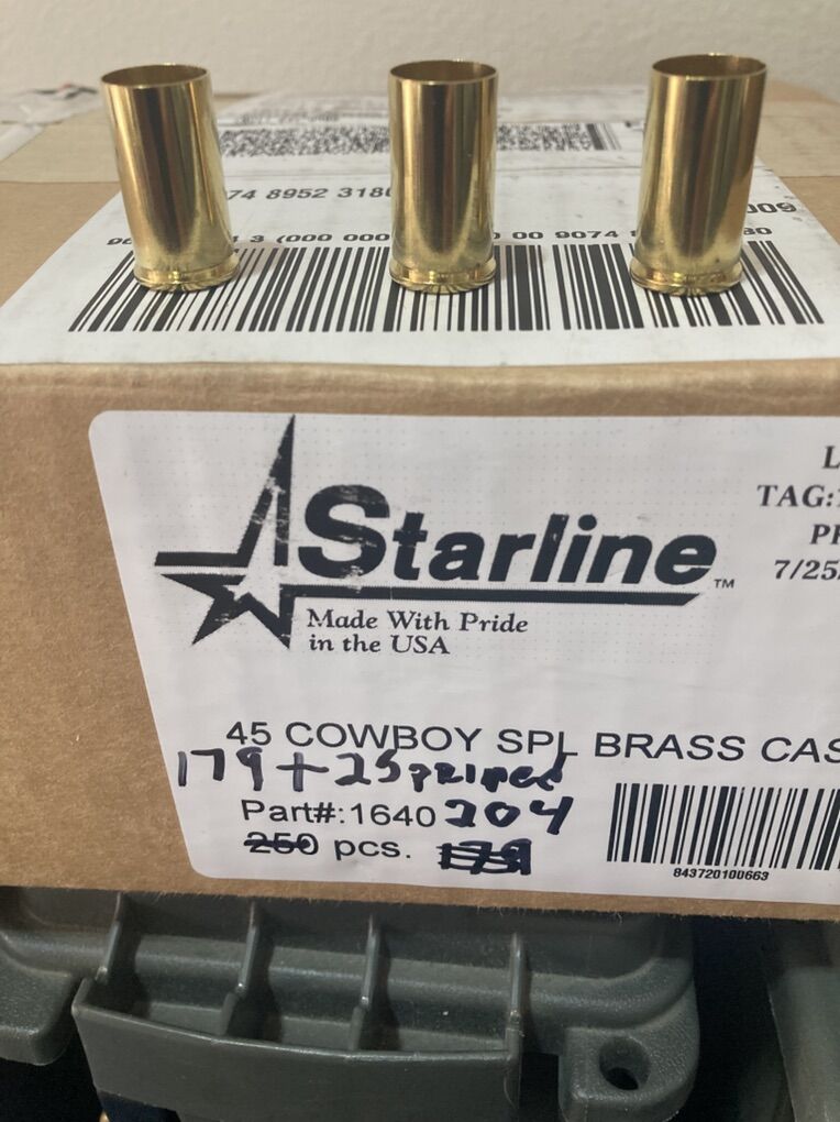 VenmoAcme .45 185 gr coated bullets qty 474 Starline .45 Cowboy special brass 179 new 25 once fired resized and primed Bullets are in boxes of 100