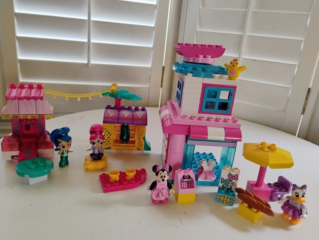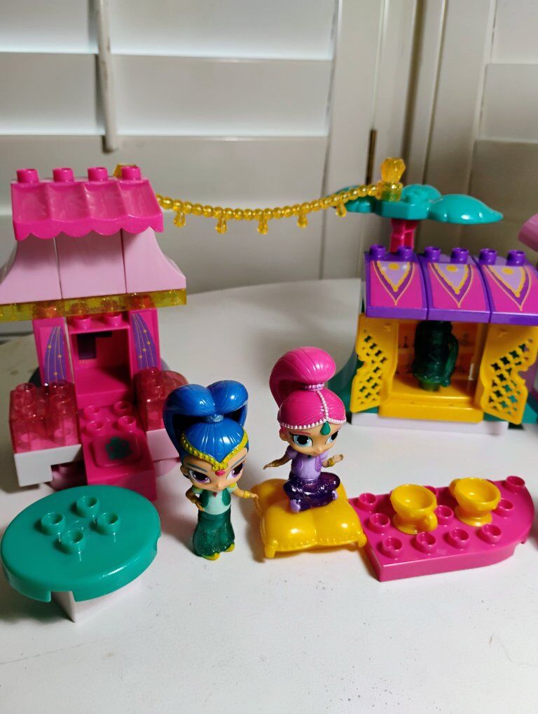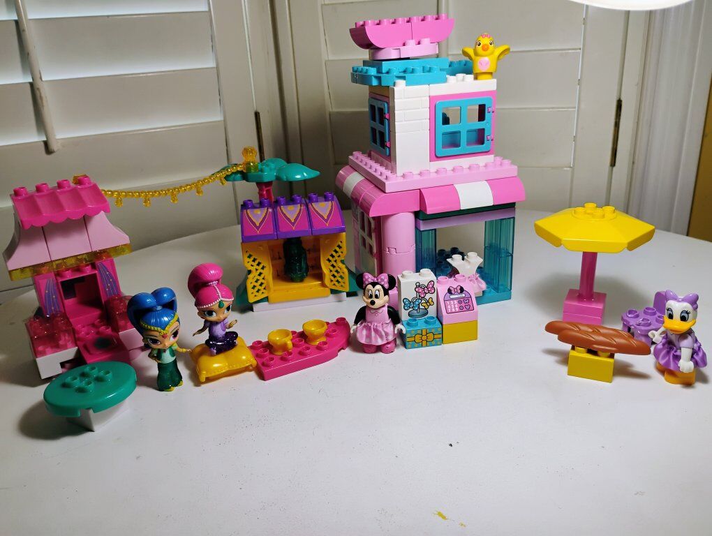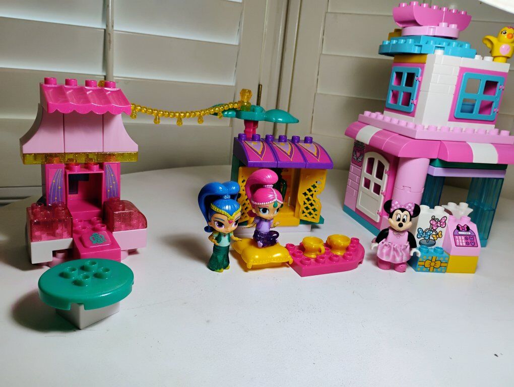 Includes a set buildable Shimmer and Shine genie market and mini mouse boutique store. The sets are not complete and 2 pieces are in fair condition as shown in the picture. Overall they are in good used condition. These sets are designed for children ages 3 and up. Promotes imaginative play and building skills