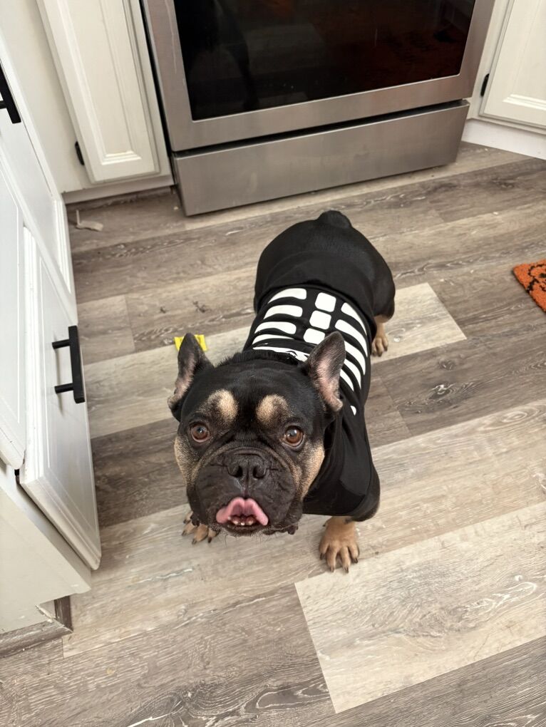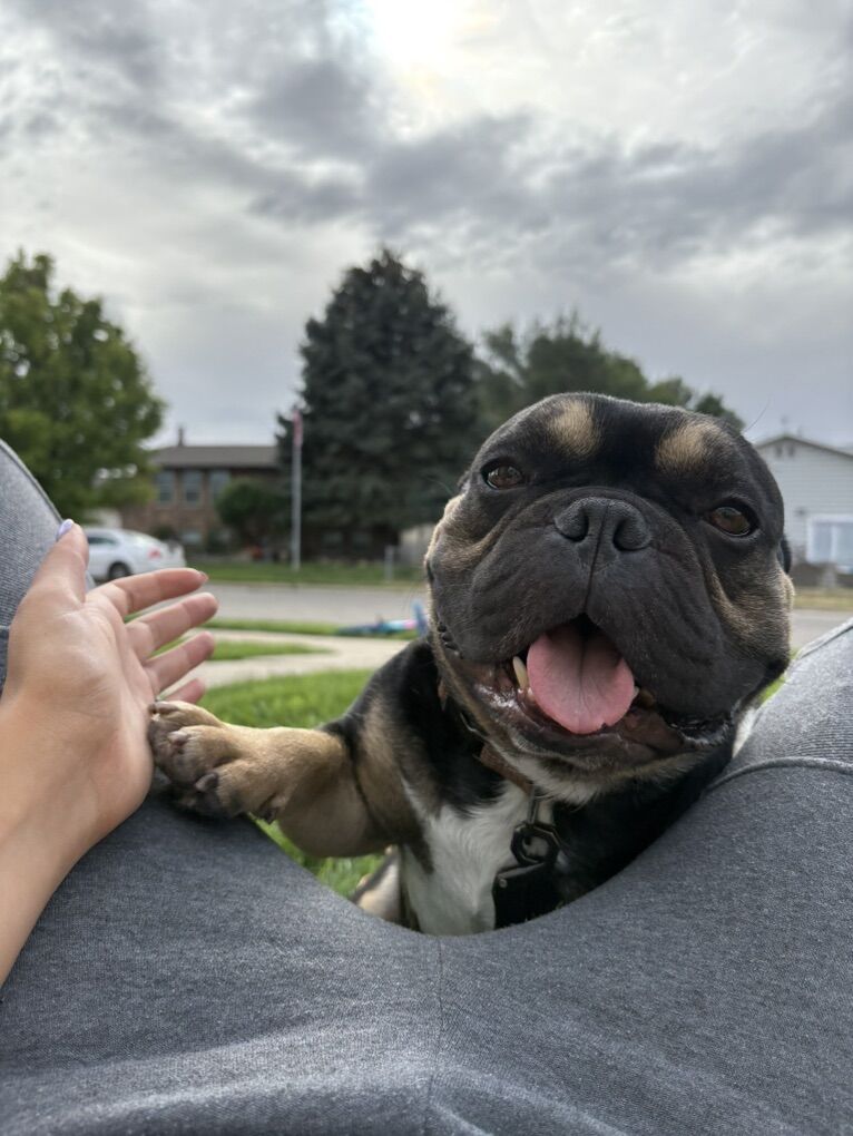 Frankie is our cute French bulldog. We adopted him from the shelter about 7 months ago and our lives have gotten hectic. He’s an amazing dog and we’re very sad to have to part with him. He loves snuggles and he’s great with kids. We have four children under 7 and we thought we’d have enough time for him but we don’t. When we adopted him, they guessed that he was around 2yrs old by his teeth. We want him to go to a loving family who has time to spend with him and take him on walks. He does great off leash as well. He would come with his crate and bed and all toys. he is fixed