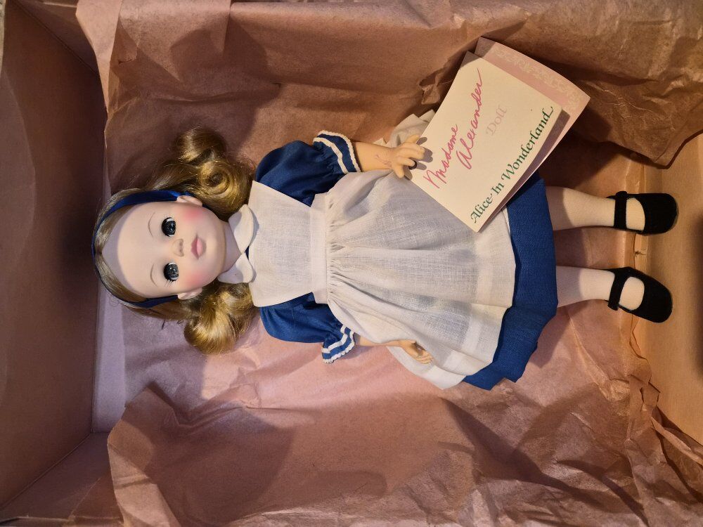 VenmoThis is a remarkable Alice in Wonderland vintage collectible. This exquisite doll is in pristine, never-used condition. It represents a charming character from a beloved classic story. The original packaging, while showing some signs of age, however the doll is perfect eyes open and close.