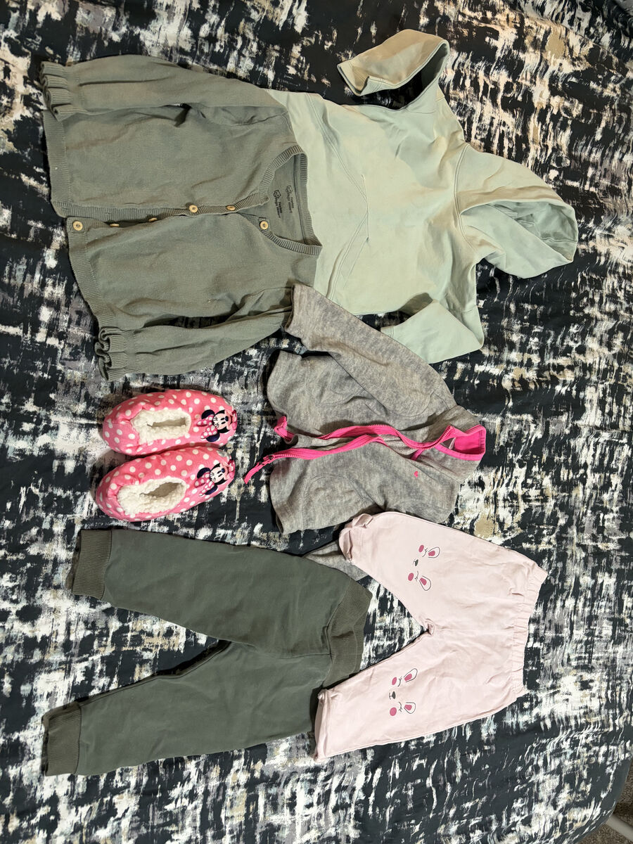 Kids' clothes - Girl from 18 months to 3 years - in 2 the bags, summer and winter clothes + shoes + pyjamas (Merrell, North Face and Crocs). Used but in good condition. Washed.