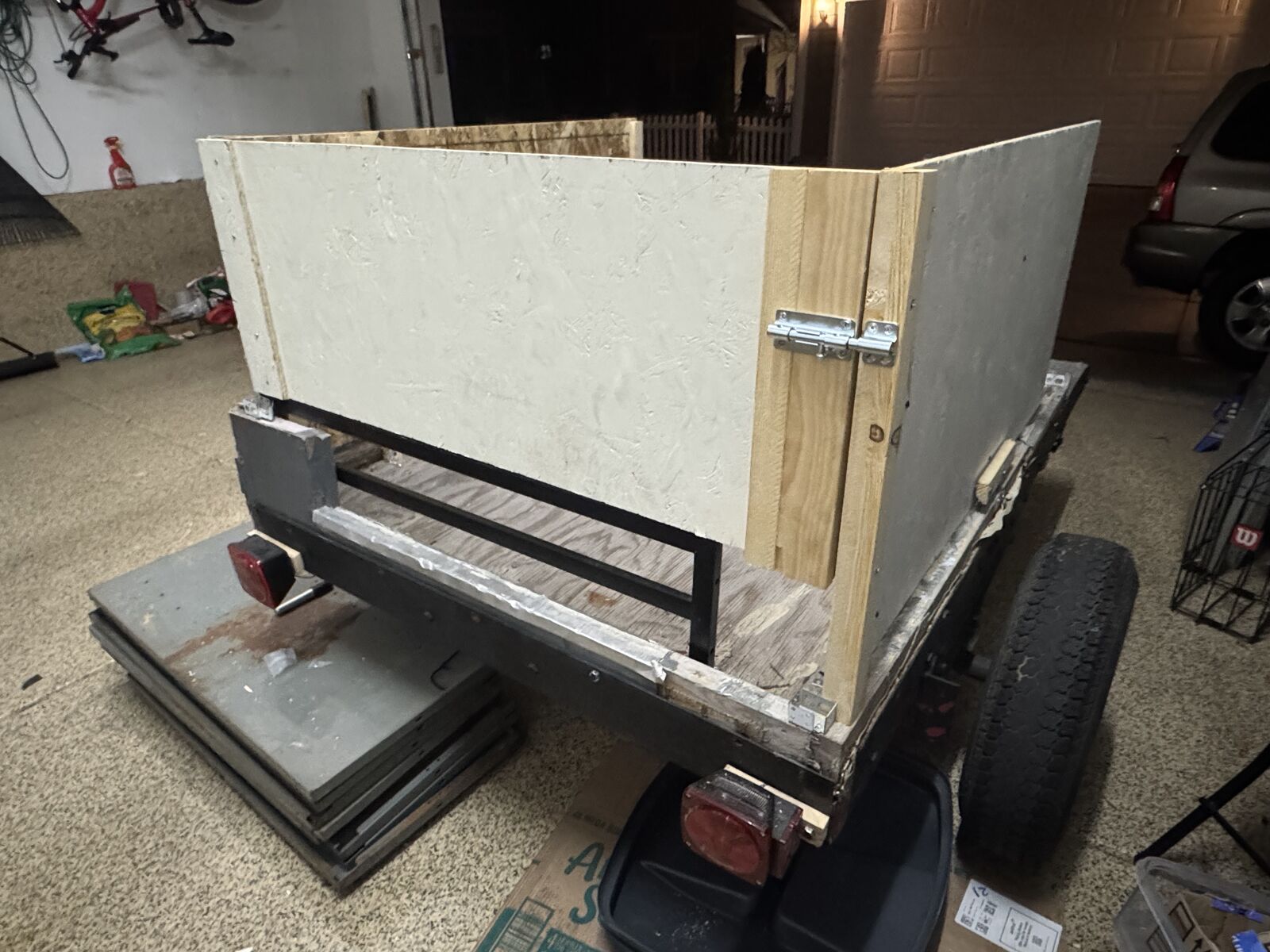 ZelleA small trailer that used to be a camper. It has a water tank underneath it, and drives straight and steady. Its axles are good too. i bought new lights and re-wired the underside. I bought it to help me move stuff but dont need it anymore! It's got new lights under it too! 1 7/8" ball