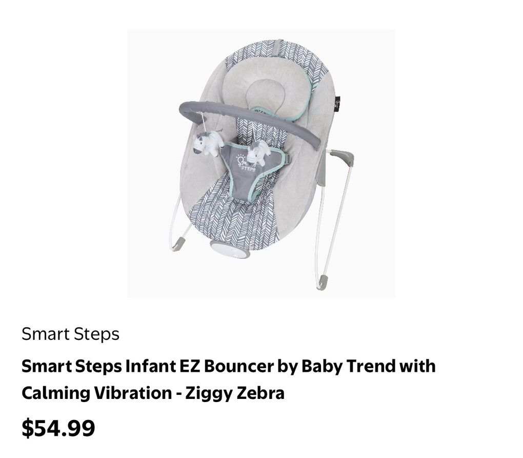New Smart Steps Infant EZ Bouncer by Baby Trend with Calming Vibration - Ziggy Zebra New in the box still