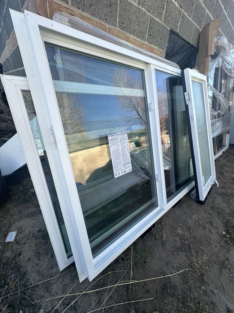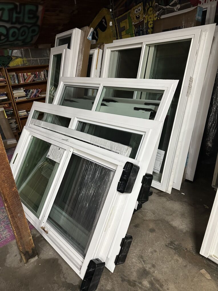 (1) 91x58 - bay window with guillotine sides that open $1000 (1) 59x56 fixed single window $300- tan (1) 84x60 - 3 window slide $600 - TAN (1) 60x60 - two window slide $500 - TAN (2) 39x47 - two window slide $300 - TAN