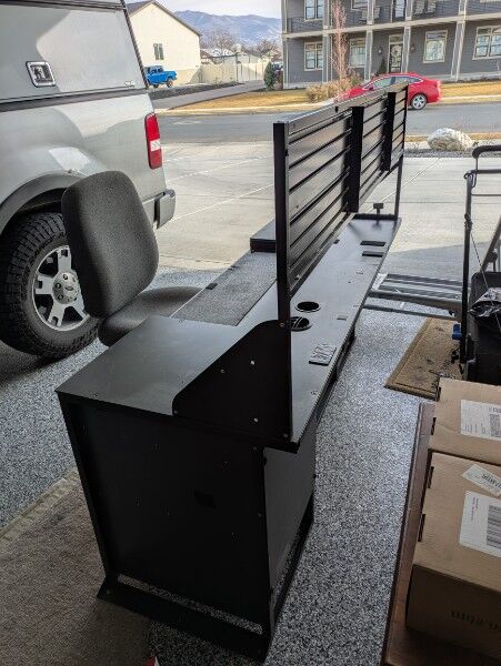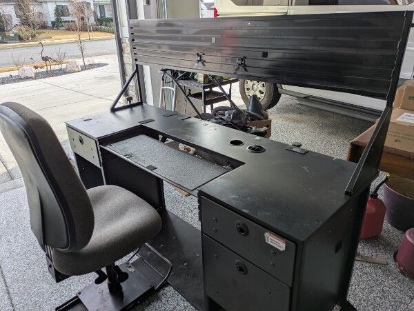 VenmoMetal Desk & Chair. Has drawers & back for attaching monitors to. The chair is attached to the desk. Asking 100.00 OBO.