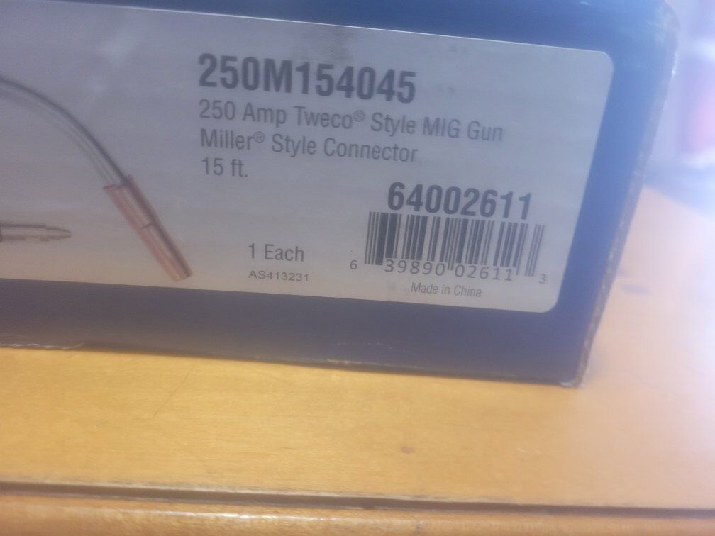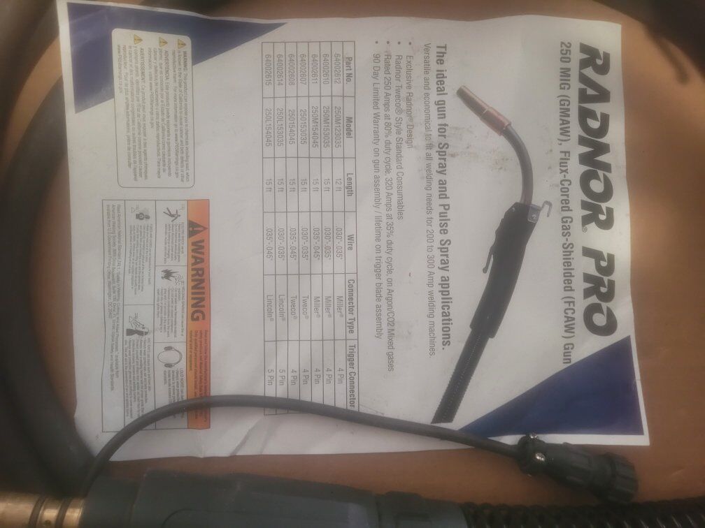 BRAND NEW RADNOR 250 AMP TWECO STYLE MIG GUN MILLER STLYE CONNECTOR 15' BRAND NEW IN BOX. 150 .00