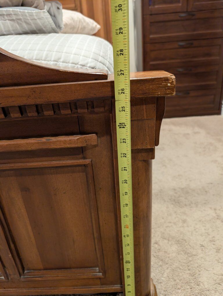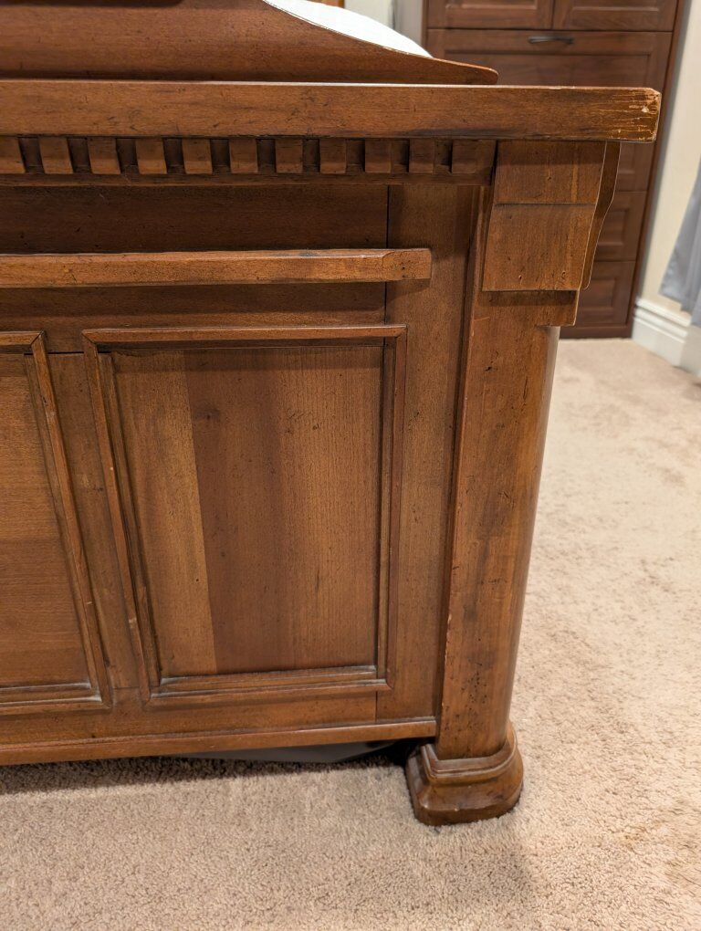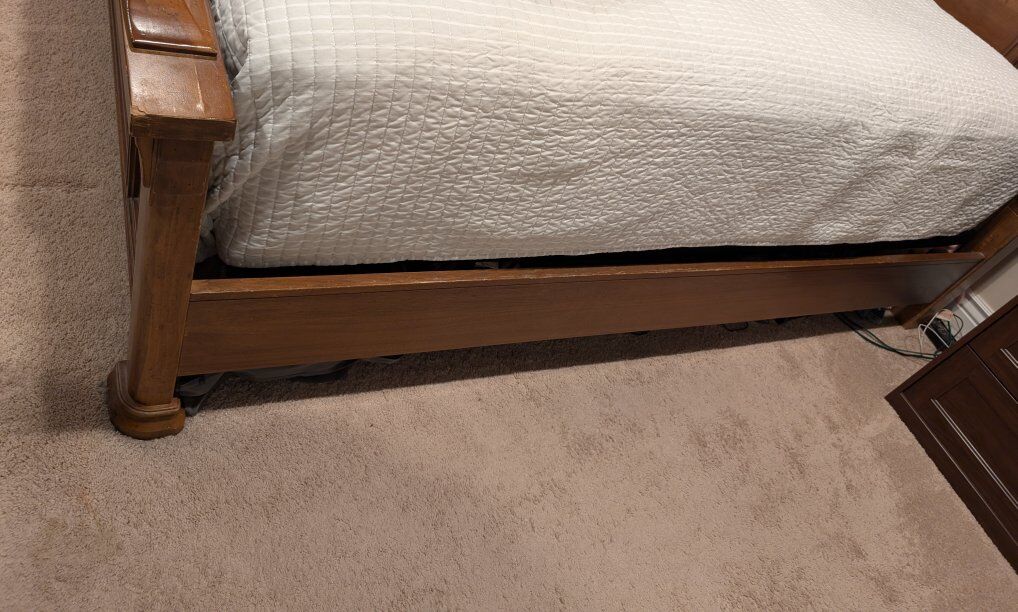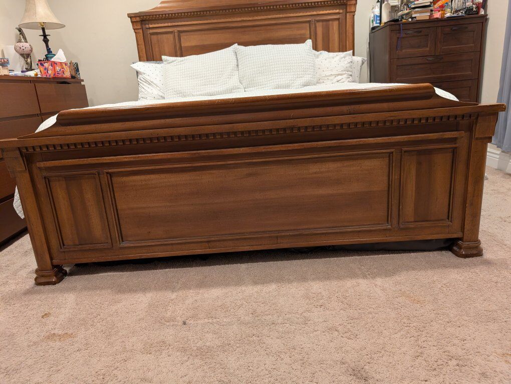 VenmoDon't miss your chance at this incredible solid wood king size bed frame (mattress not included because that would be weird). This thing is HEAVY DUTY. We've owned it for a decade and it's still solid AF. This is top of the line Ashley Furniture. Built to last. $300 OBO. Retail price for a new one is $1100 What a deal!!