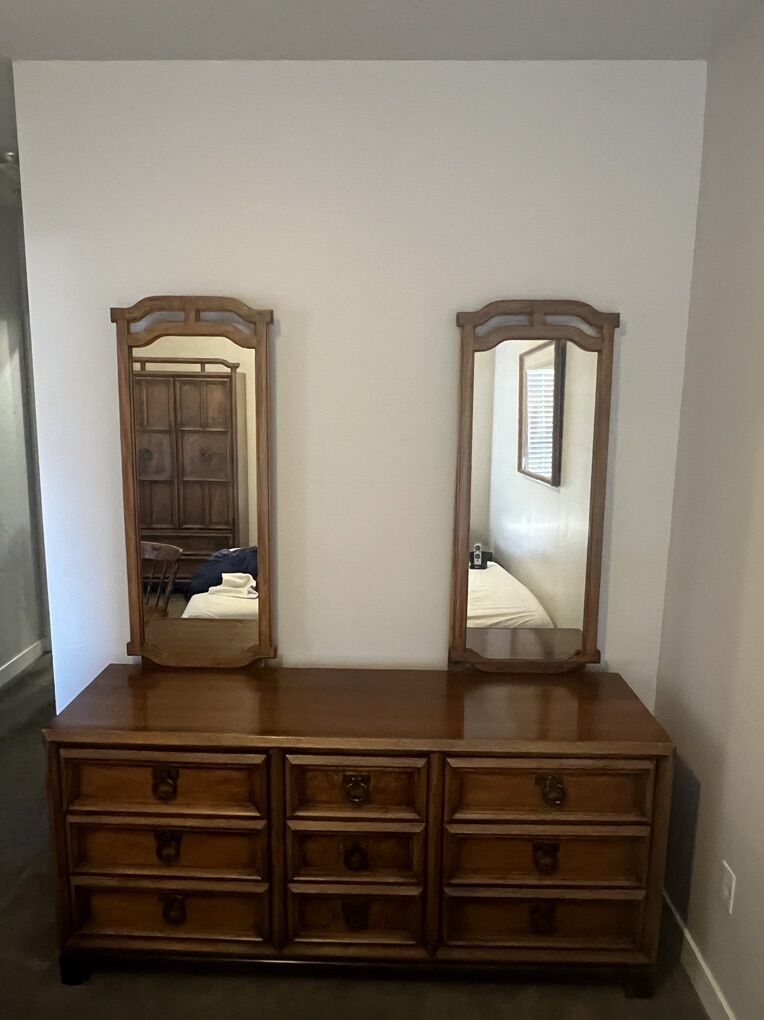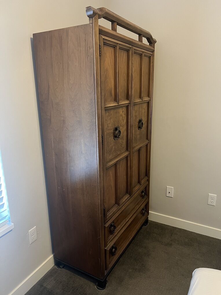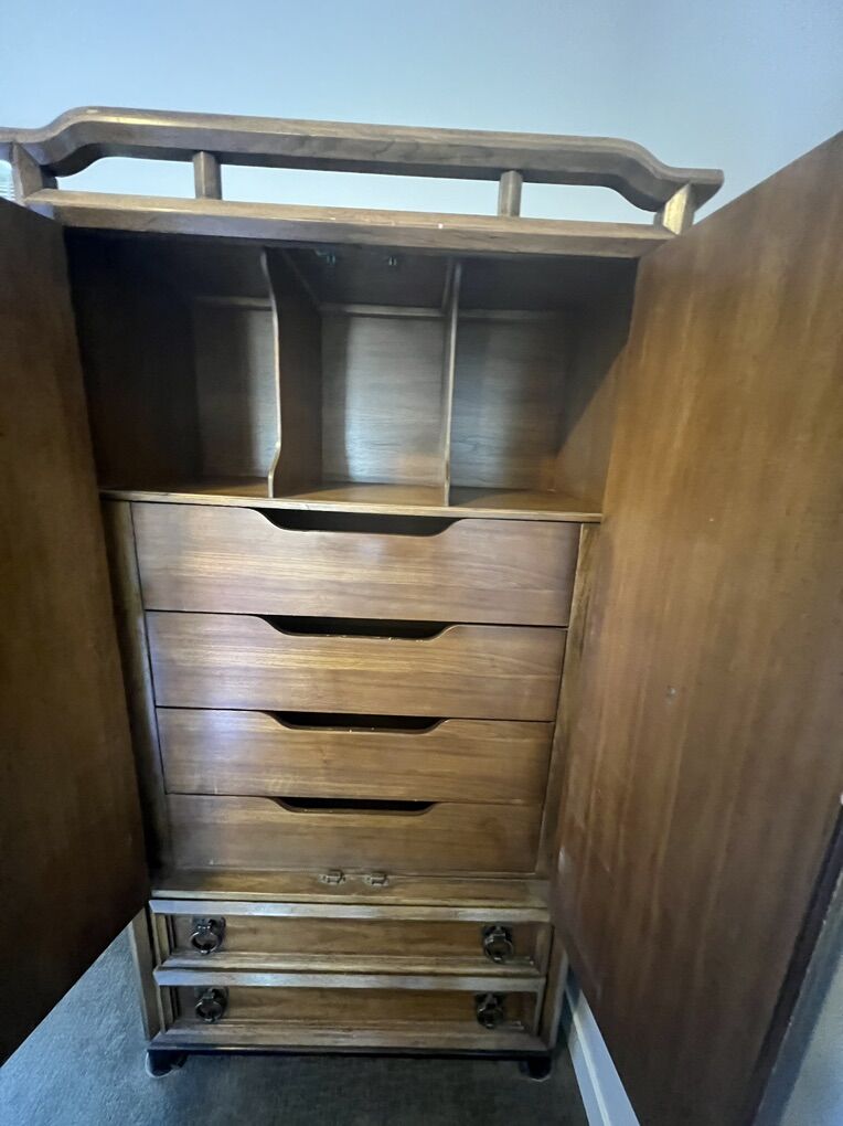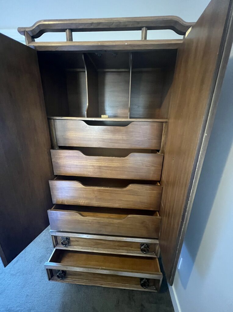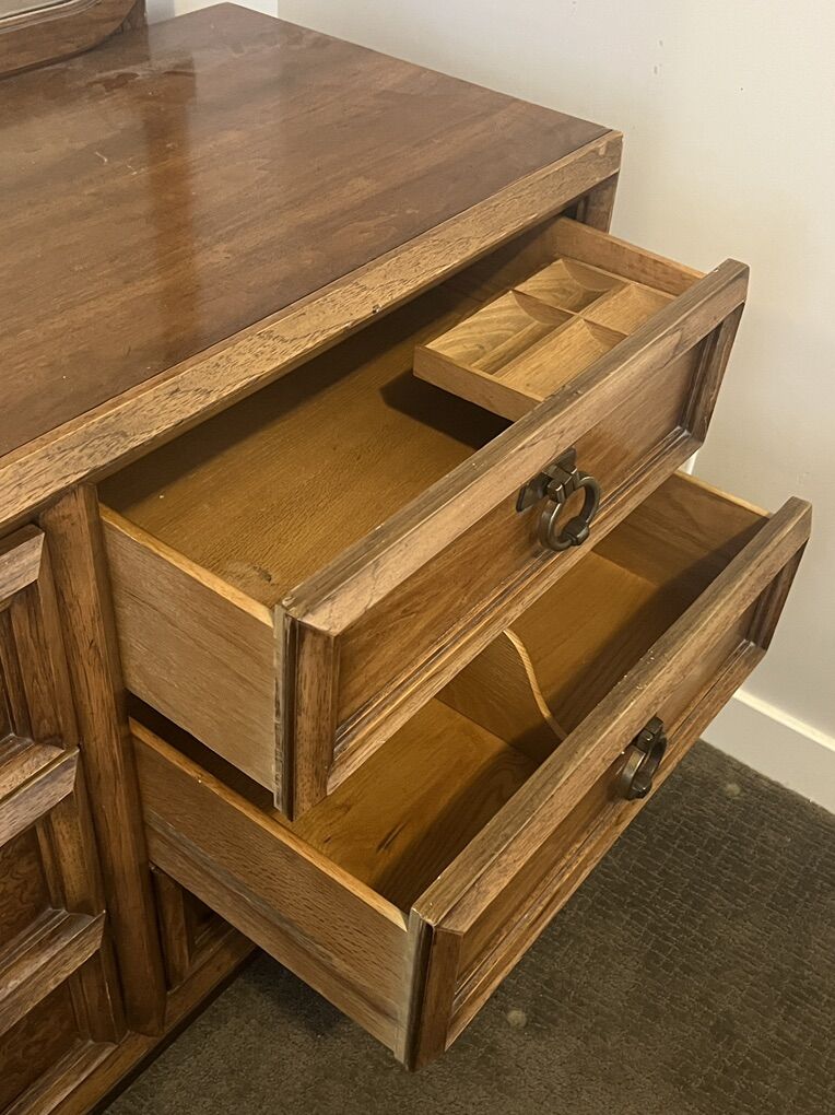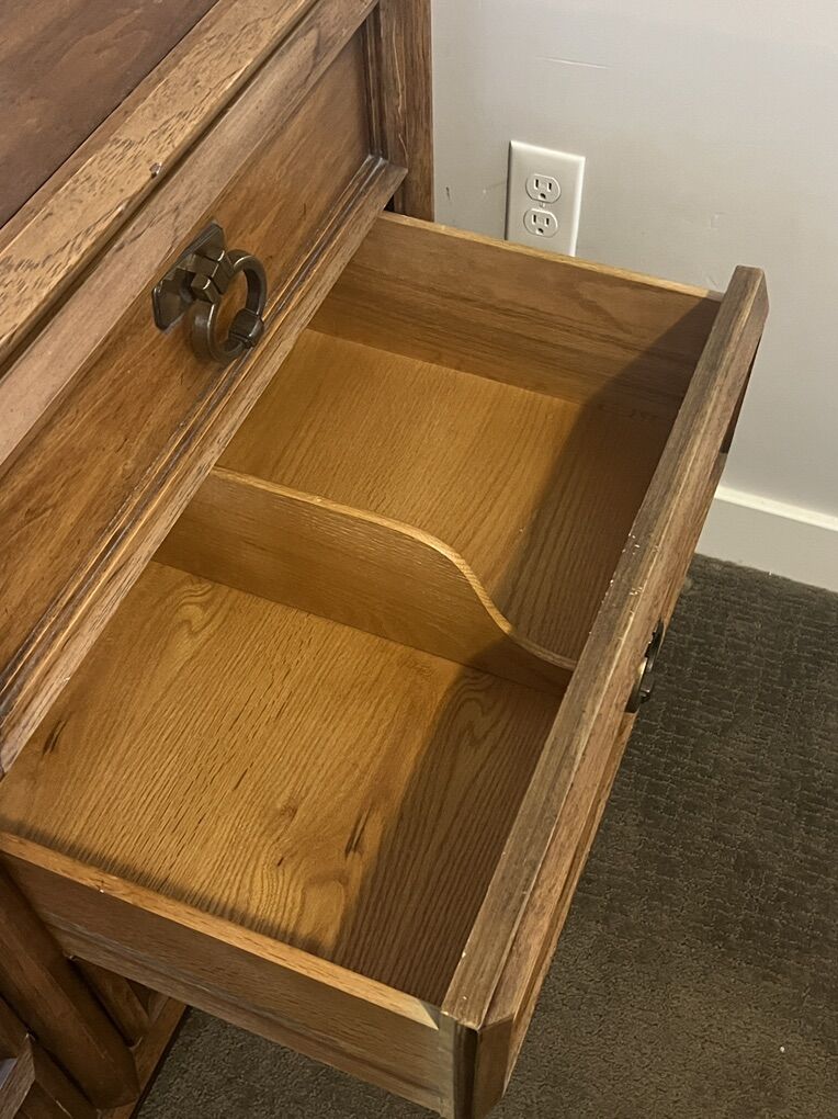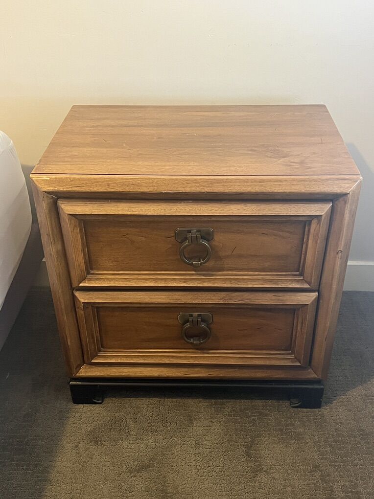 The nightstand has a minor issue with the top drawer, but completes the set. I’m working to fix that before somebody buys it.