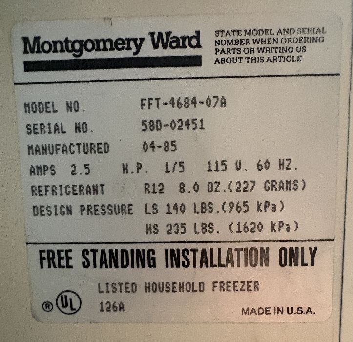 This is ideal as a budget backup freezer for meat, garden produce, or bulk Costco buys. Older freezers like this are built heavy and simple, and are easy to service if needed.